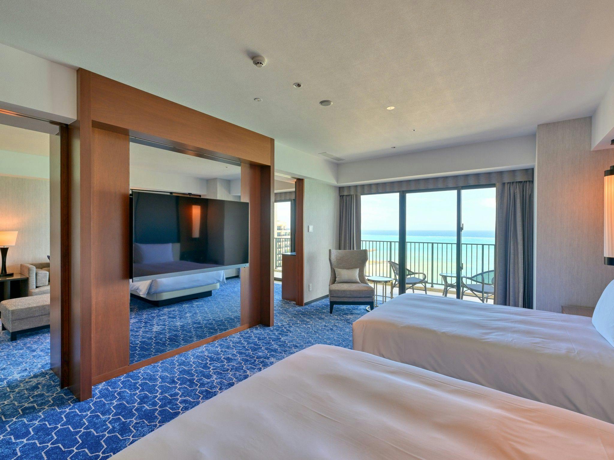 オーシャンビュー&サンセットビュー。当ホテルお薦めの客室が隣の部屋と内側のドアでつながっているコネクティングルームです。