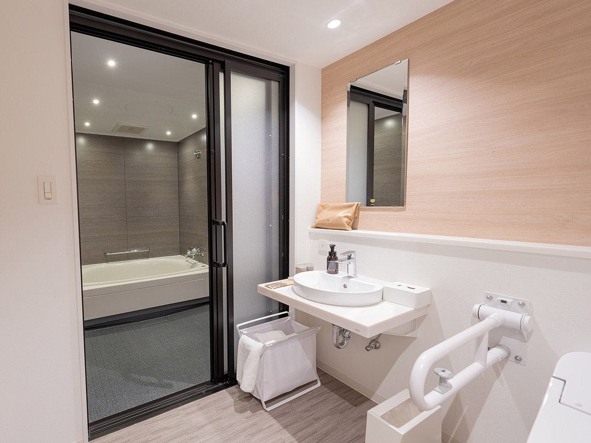 30m2のお部屋に1800mm幅のベッドを1台ご用意し、車椅子をご利用や高齢のお客様に、安全で快適にお過ごしいただける機能を揃えたお部屋です。