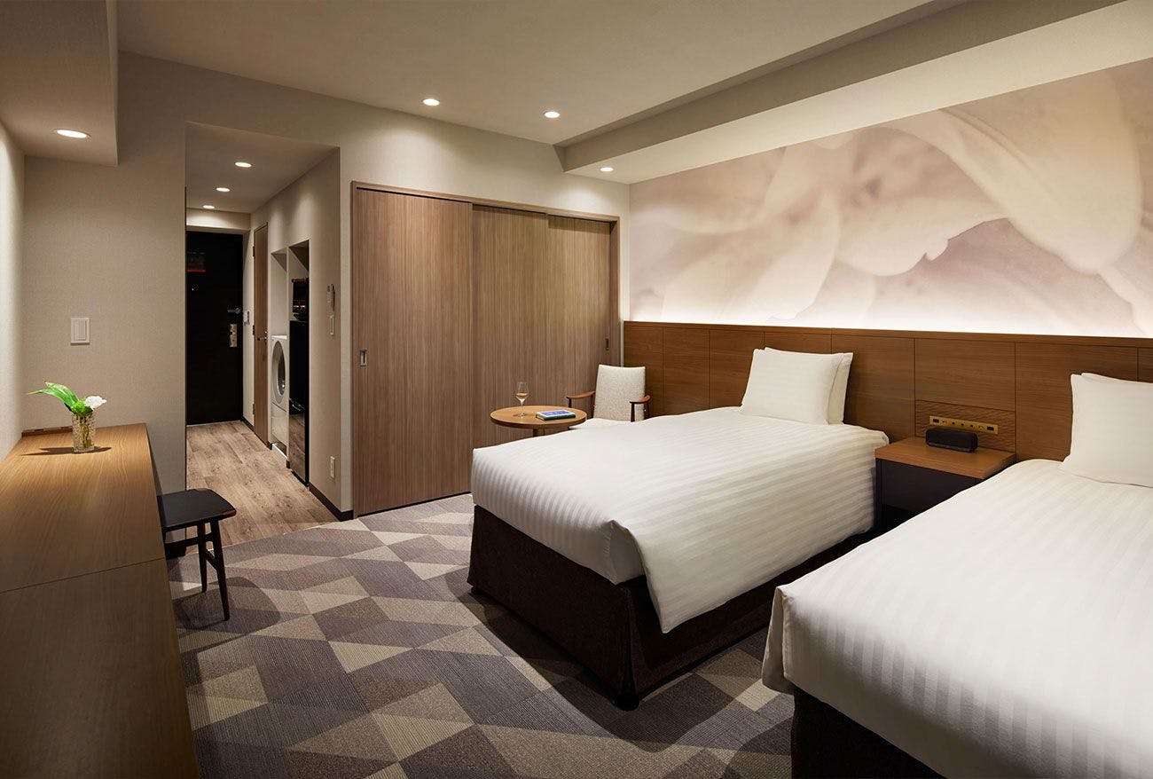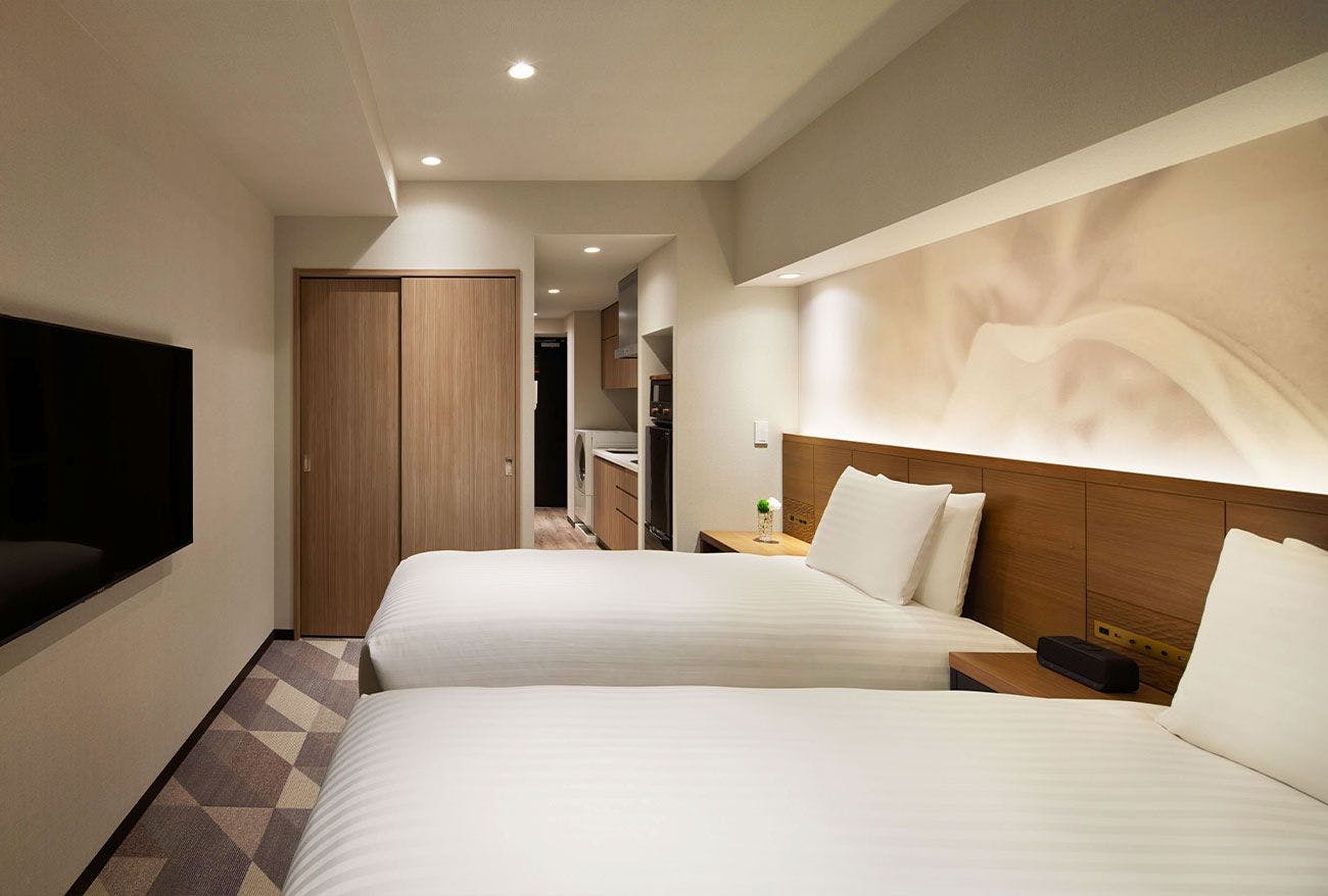 シックでシンプルなデザインのスタジオ スーペリア ツインは、ご友人とのご旅行や同僚の方とのご出張のお客様に最適です。快適な空間が、明日への英気を養うための心安らぐひとときをお届けします。ぐっすりお休みいただけるツインベッドと、1日の始まりや終わりのリフレッシュタイムに最適なバスタブ・トイレ付のバスルームをご用意しました。