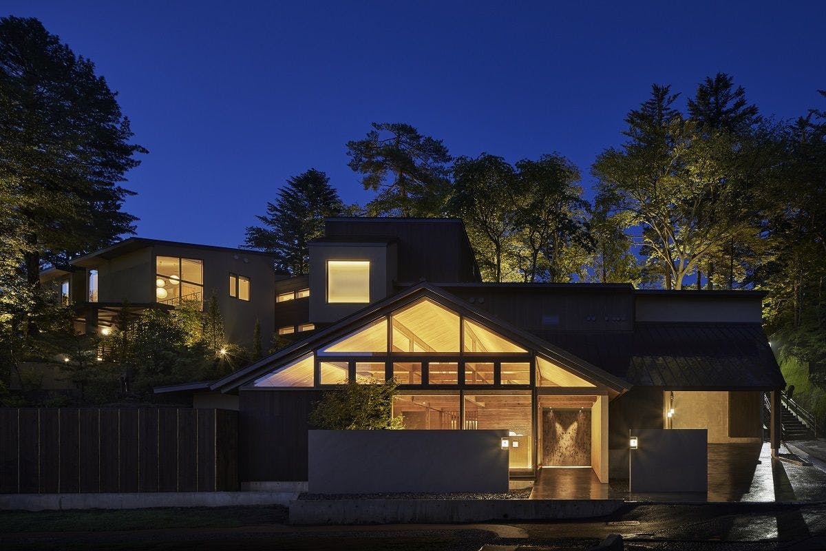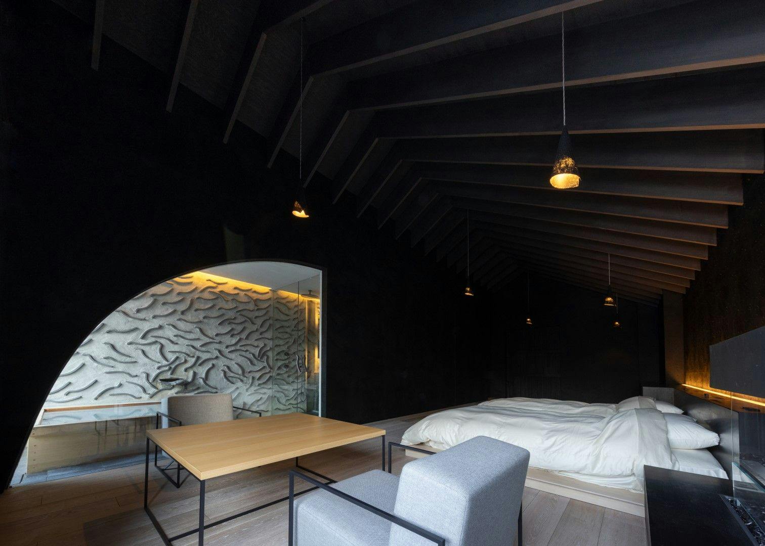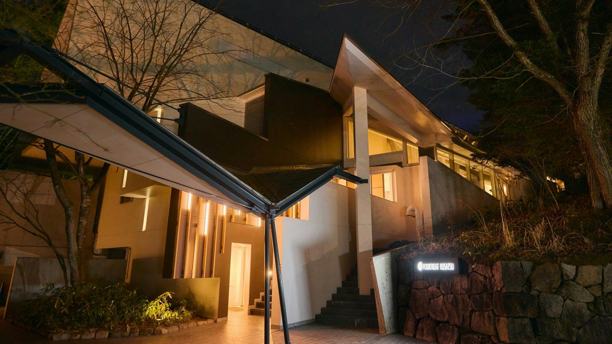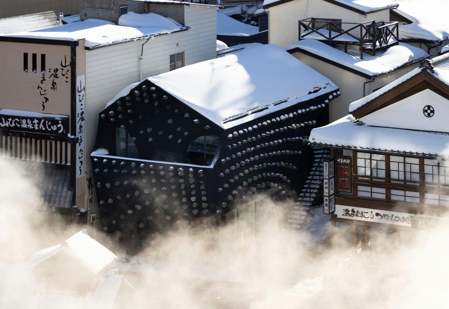 建築家 隈研吾の設計デザインで、コンセプトは「湯畑の立体化」。ゴロゴロと積まれた浅間石、その中を流れる温泉。湯畑を眺めながら、「湯畑」に包まれた空間を体感できます。