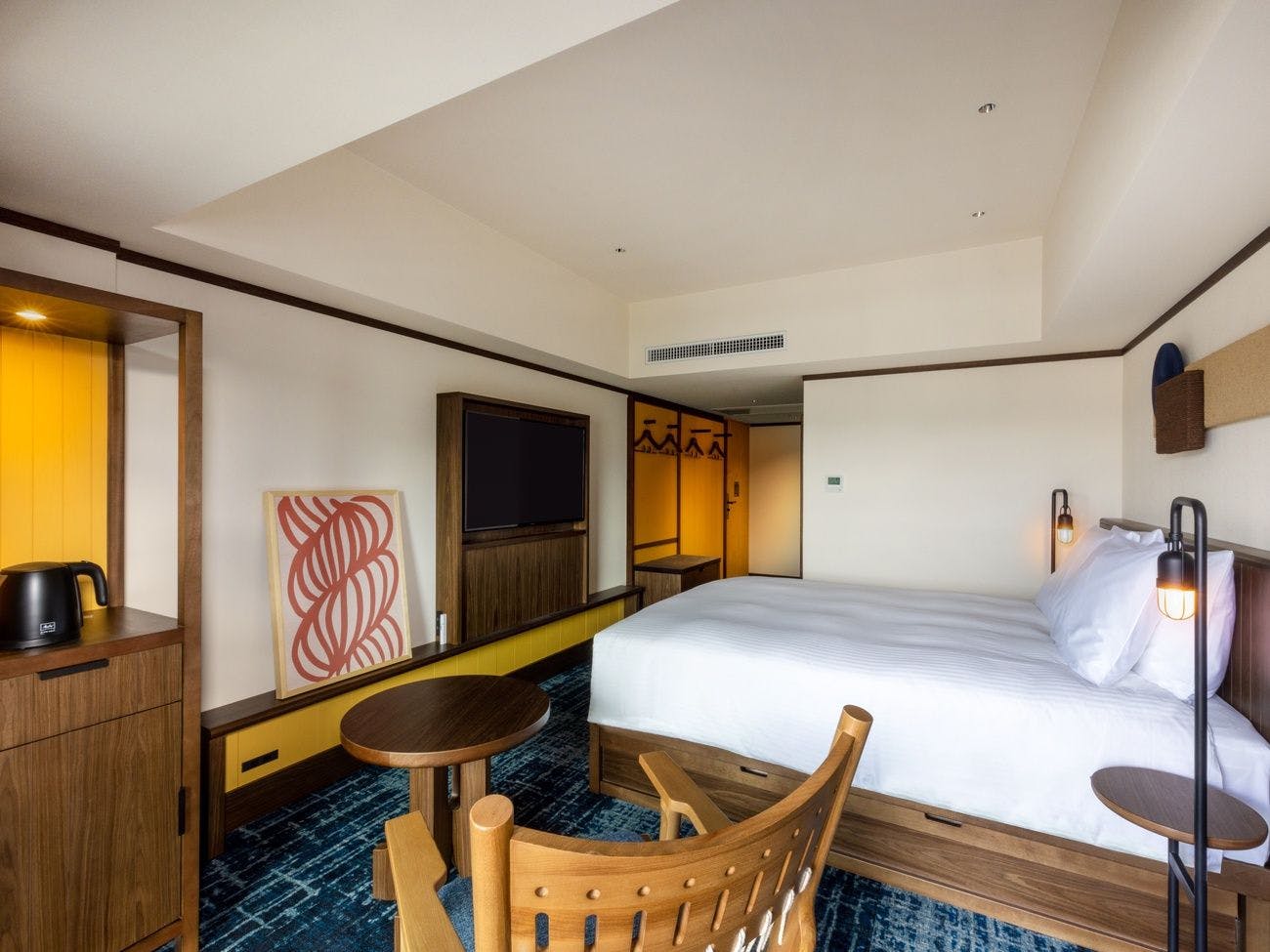幅180cmのダブルベッド1台とスタッキングベッドを1台をご用意。3名様までご宿泊いただける客室です。