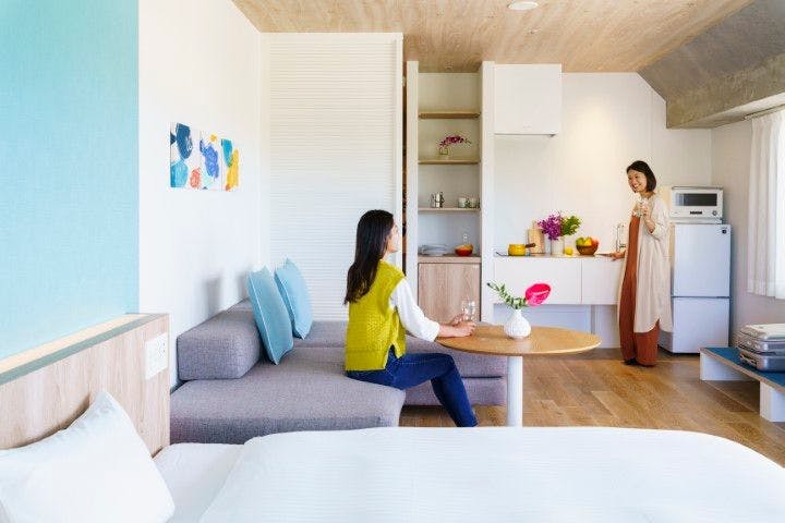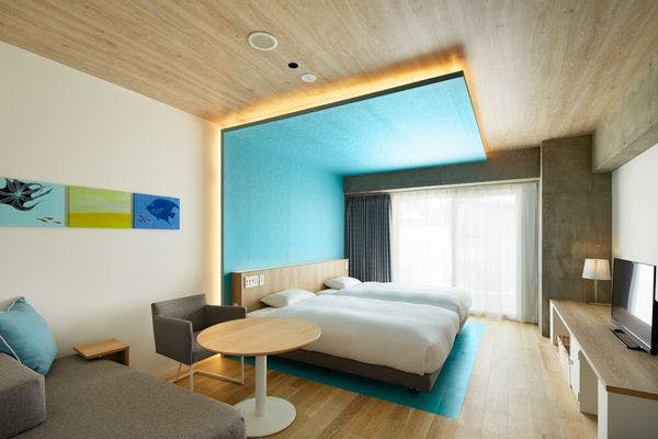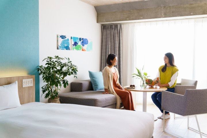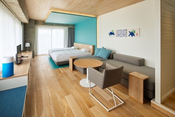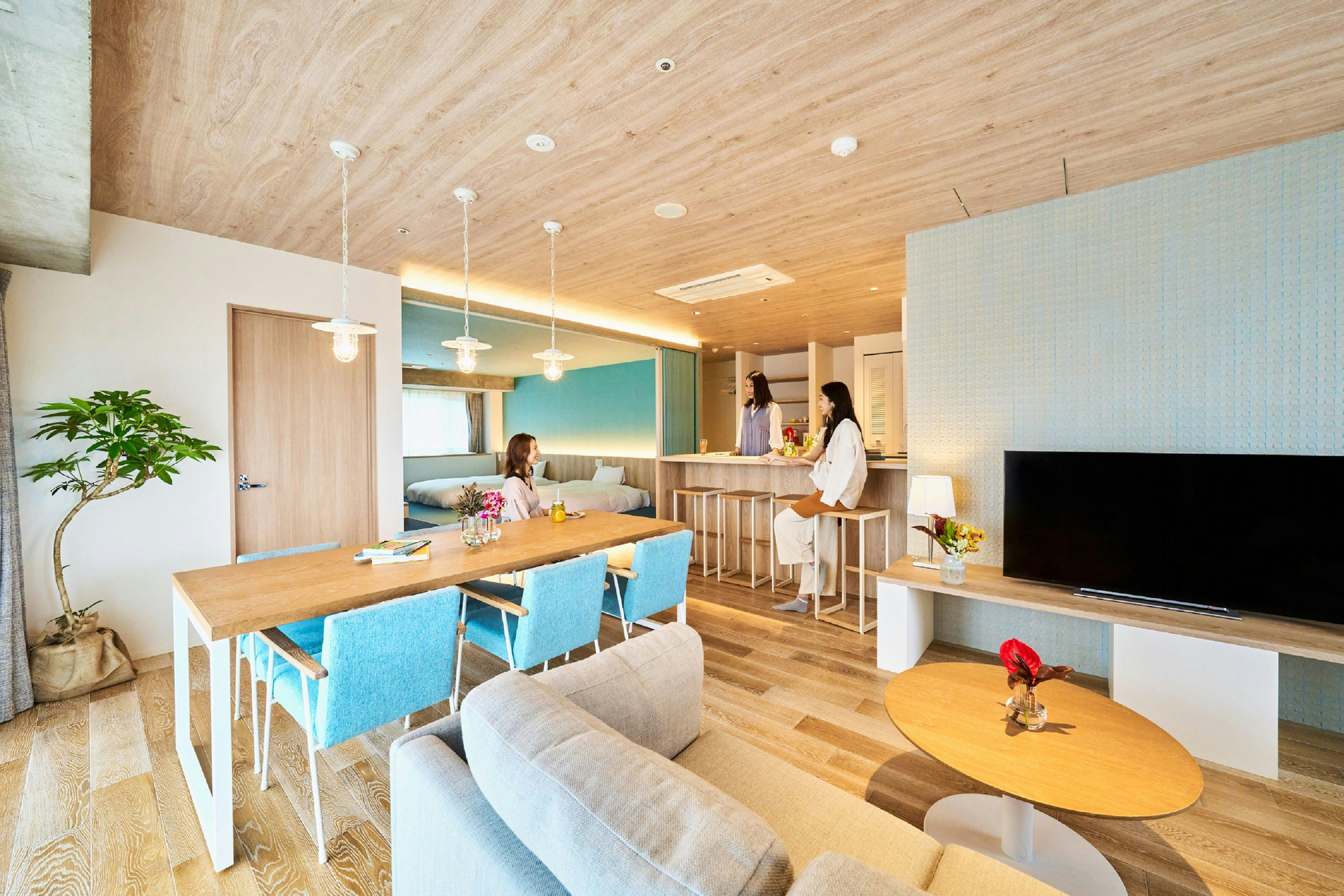 屋内外にひろがるラウンジと、開放感あふれるプールが特徴のルーズなホテル。全部屋にキッチン・大型冷蔵庫・バルコニー付き!
