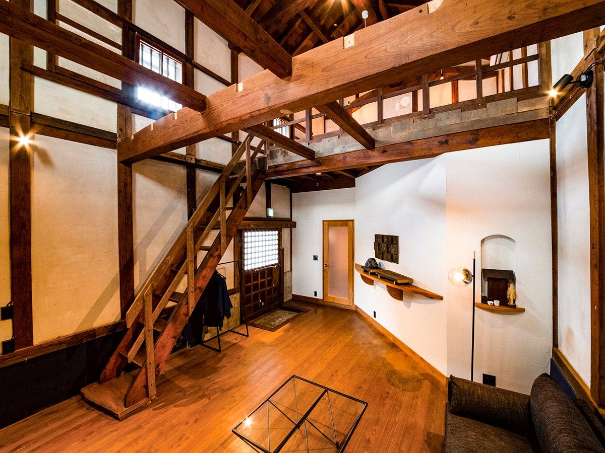 「マル十薬局」敷地内にある重厚な蔵を、古き良き時代の趣はそのままに現代のセンスと調和させたメゾネットタイプ【設備】洗面台・檜風呂・洗浄機付きトイレ・無料WiFi