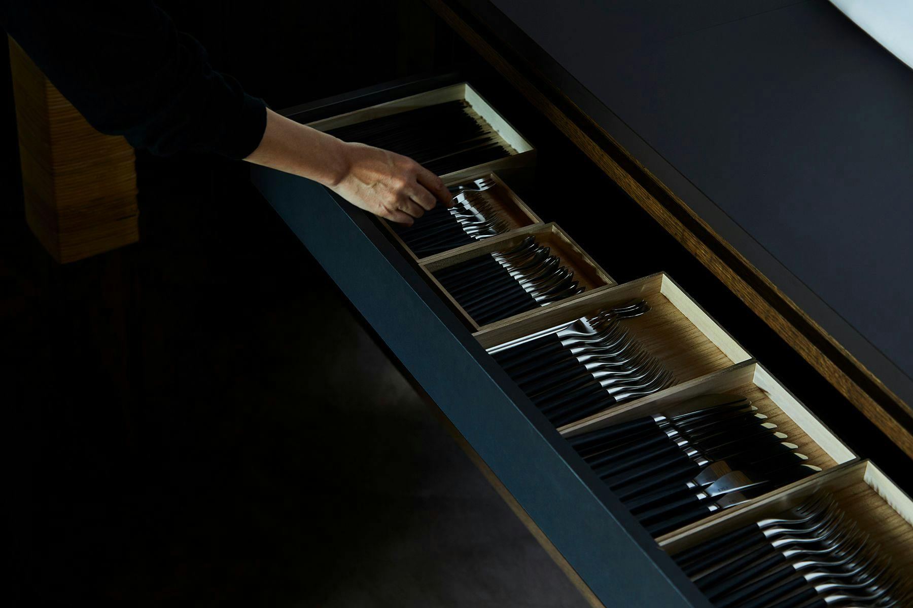 4口ガスコンロ、冷蔵庫、ガスオーブン、食洗機、ワインセラー、浄水器、製氷機、電子レンジ、ミキサー、電気ポット、プロ仕様調理器具一式、食器、カトラリー、洗剤、スポンジ、ふきん