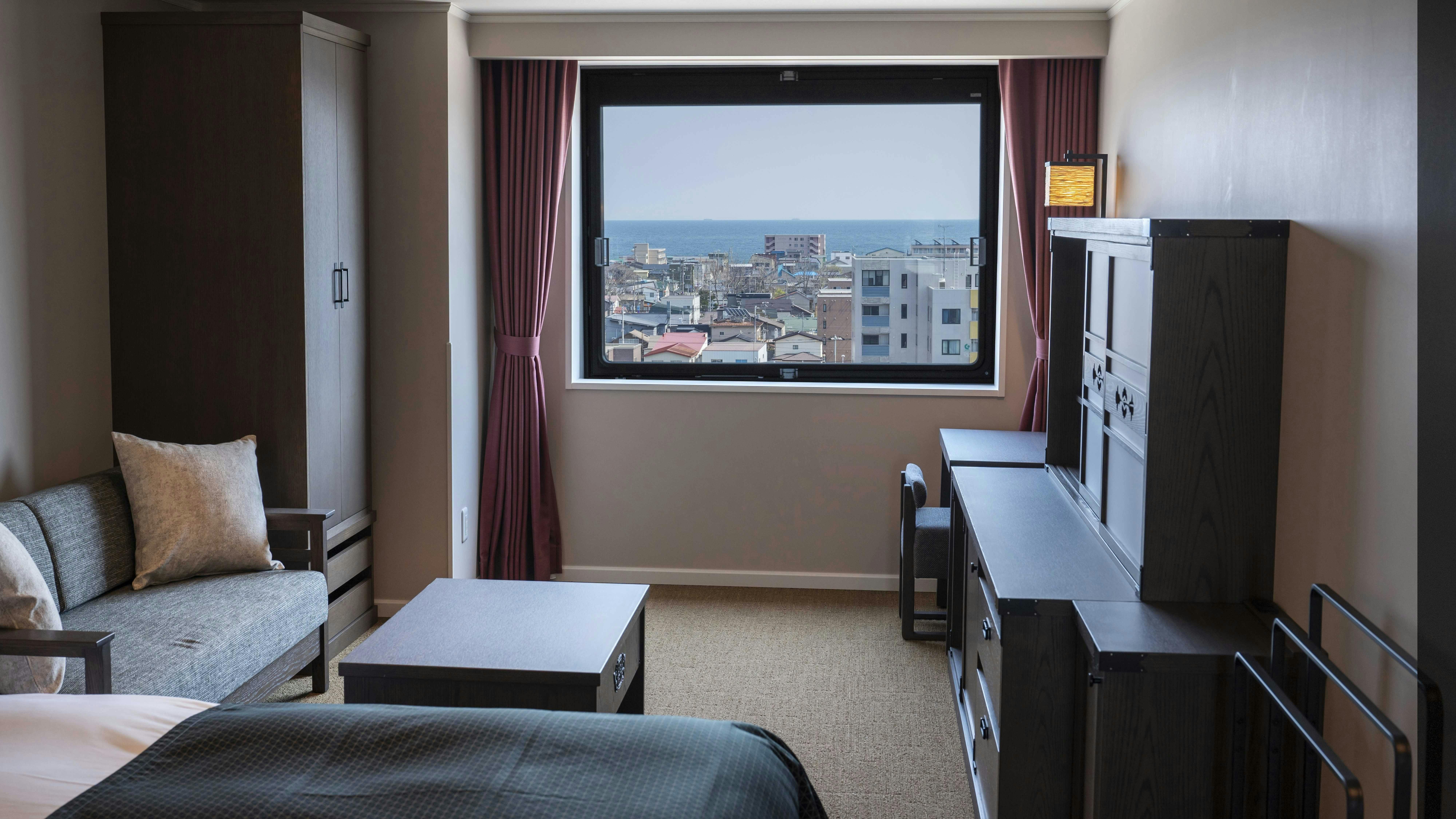 お部屋の窓からは、津軽海峡が広がり景色をお愉しみいただけます。