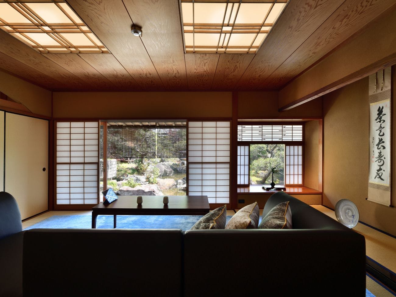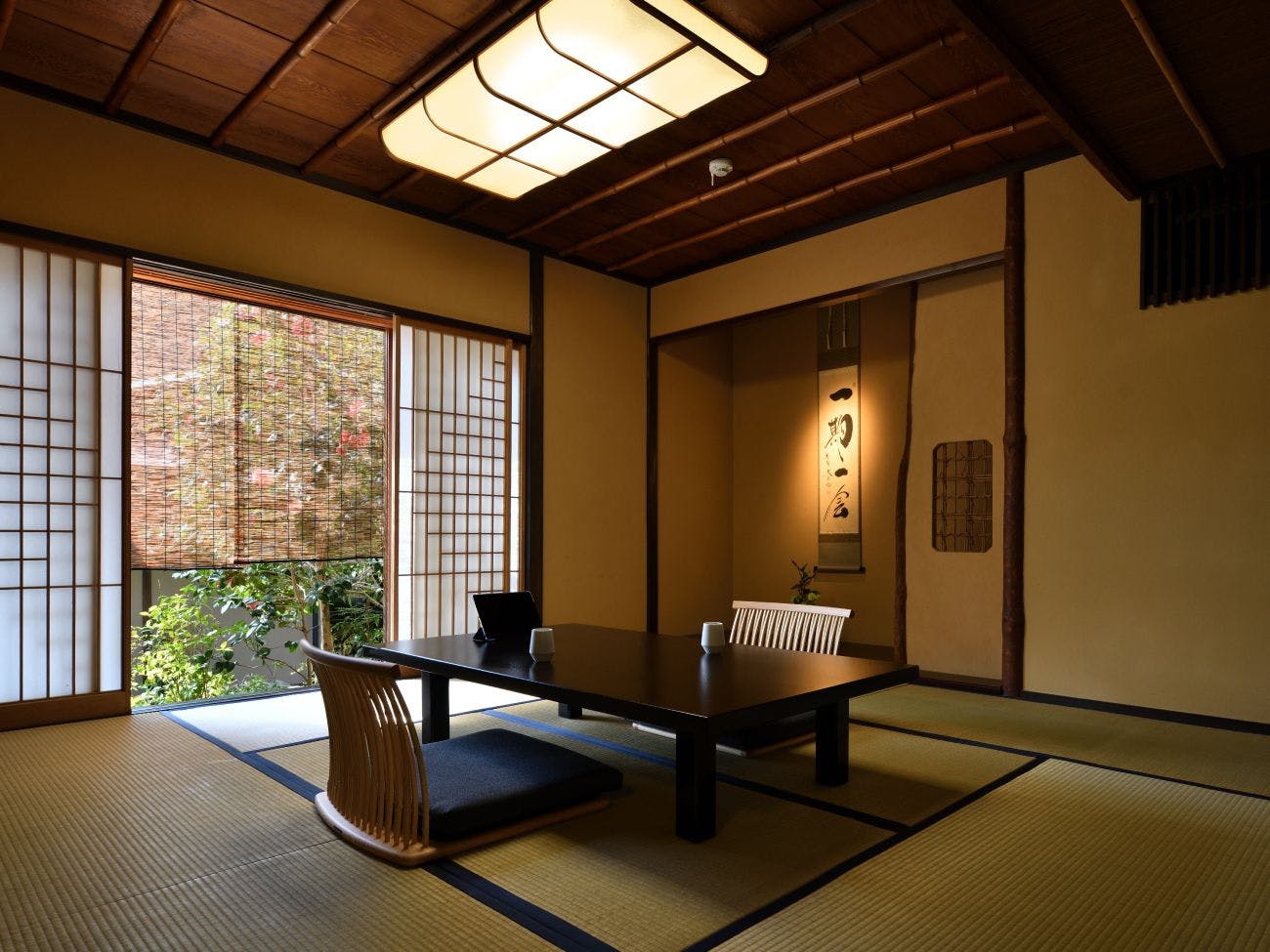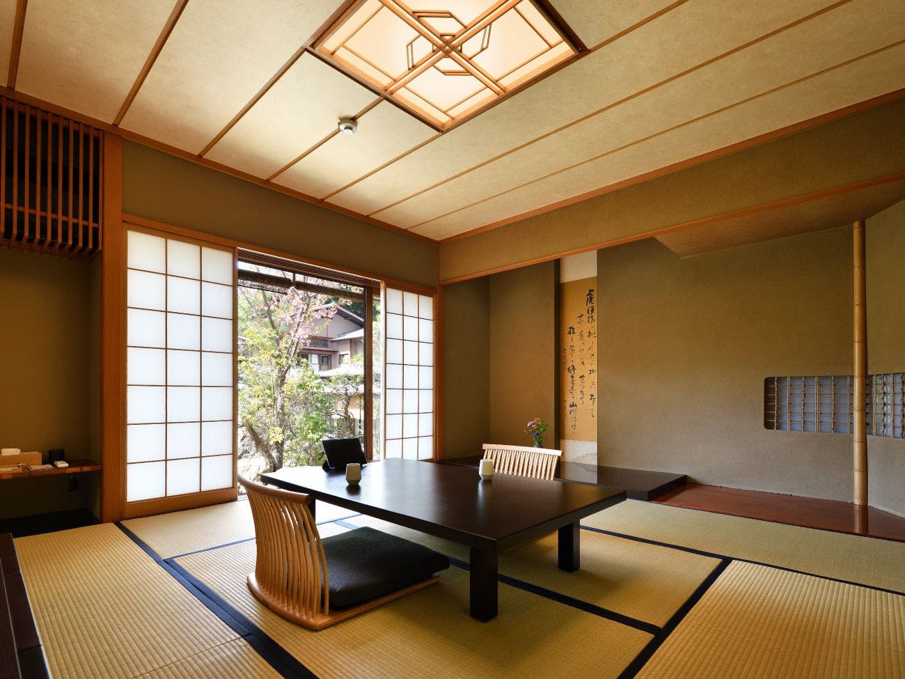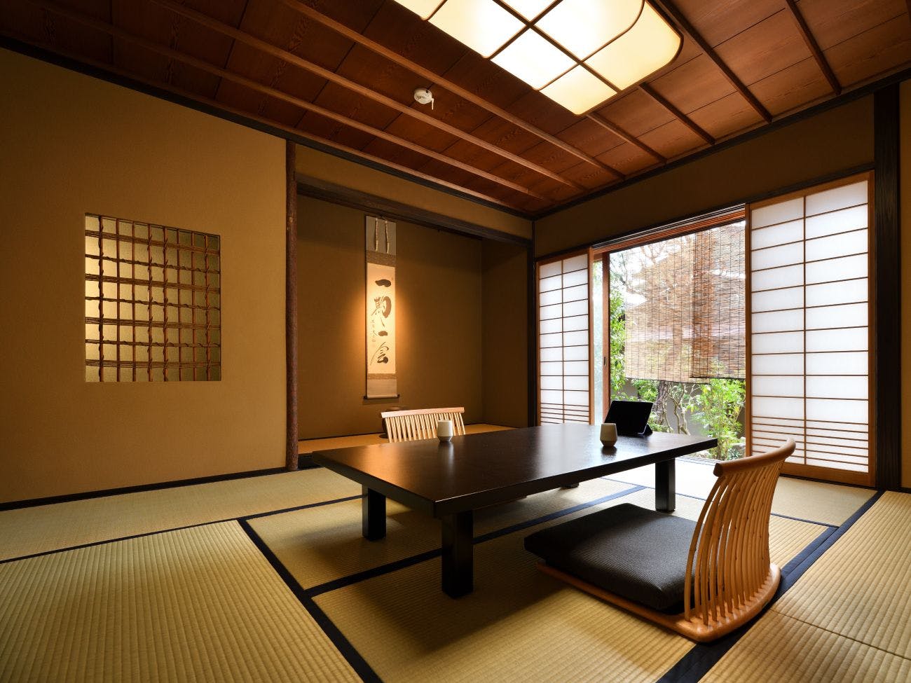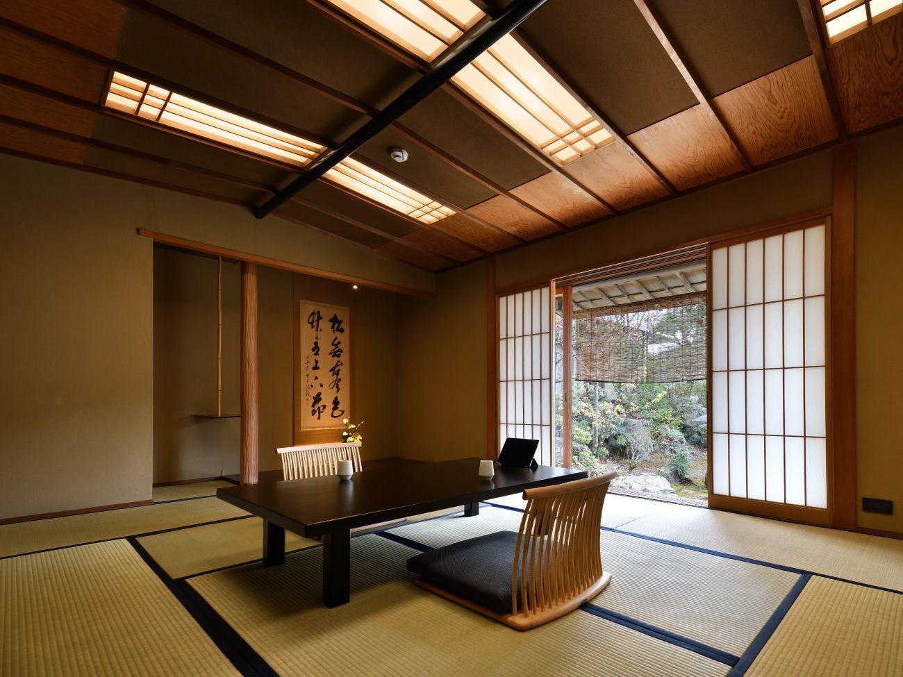 庭園を眺める伝統的な和室10畳和の趣に富んだ10畳の和室では、季節で表情を変える庭園を眺めてお過ごしください。モダンな設えの露天風呂では、坪庭の木々を愛でながら名湯「修善寺温泉の湯」を心ゆくまでお楽しみいただけます。和室と寝室は一続きに繋げて広い寝室としてもご利用いただけます。※喫煙は所定の喫煙所にてお願いいたします。