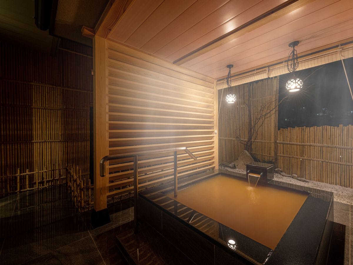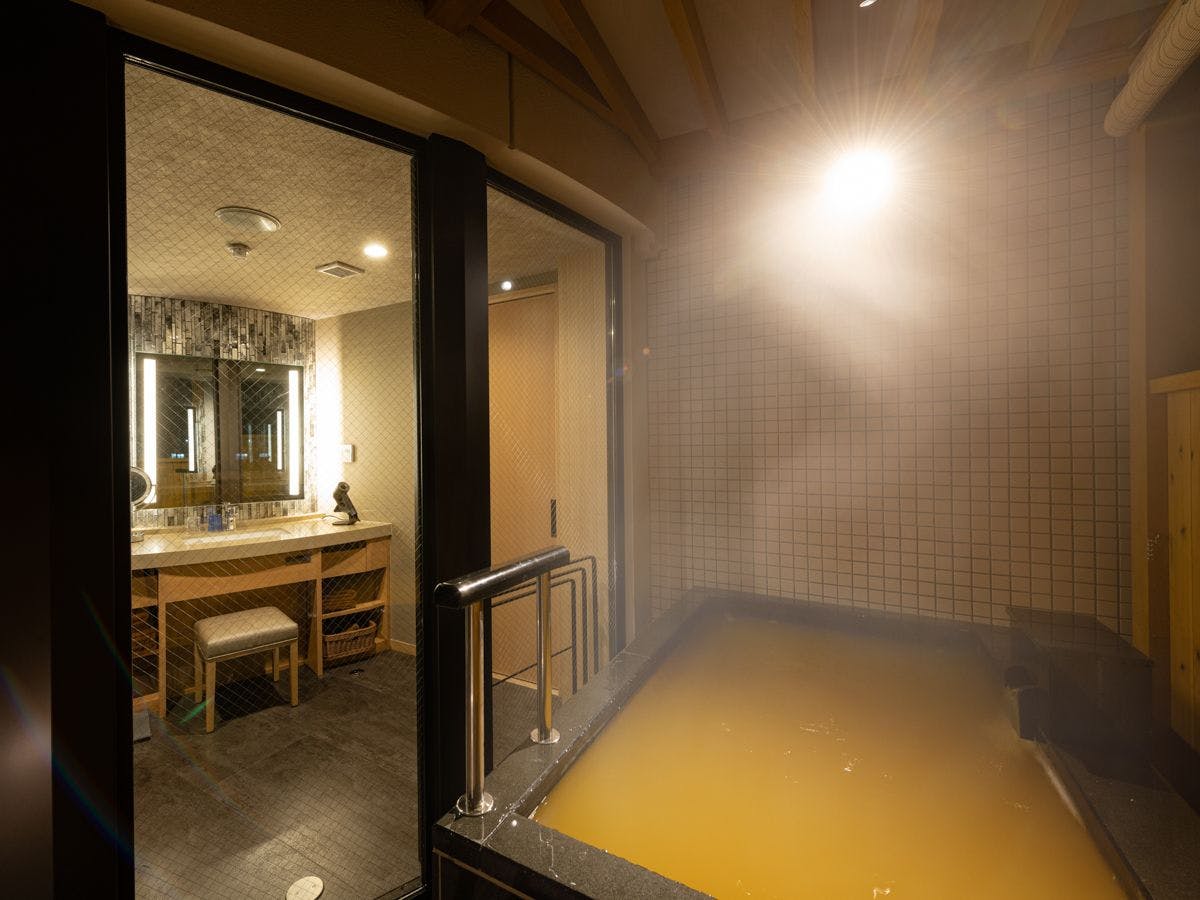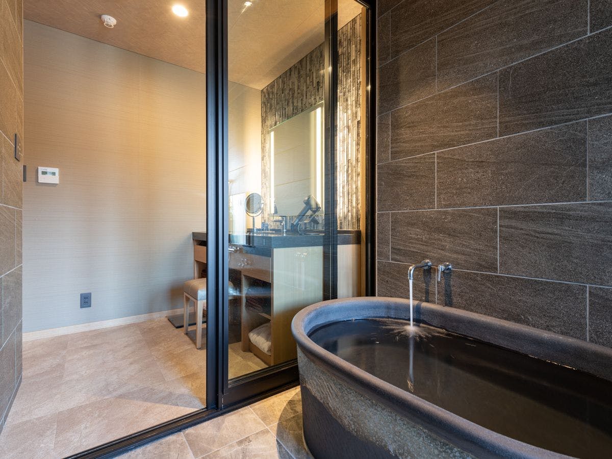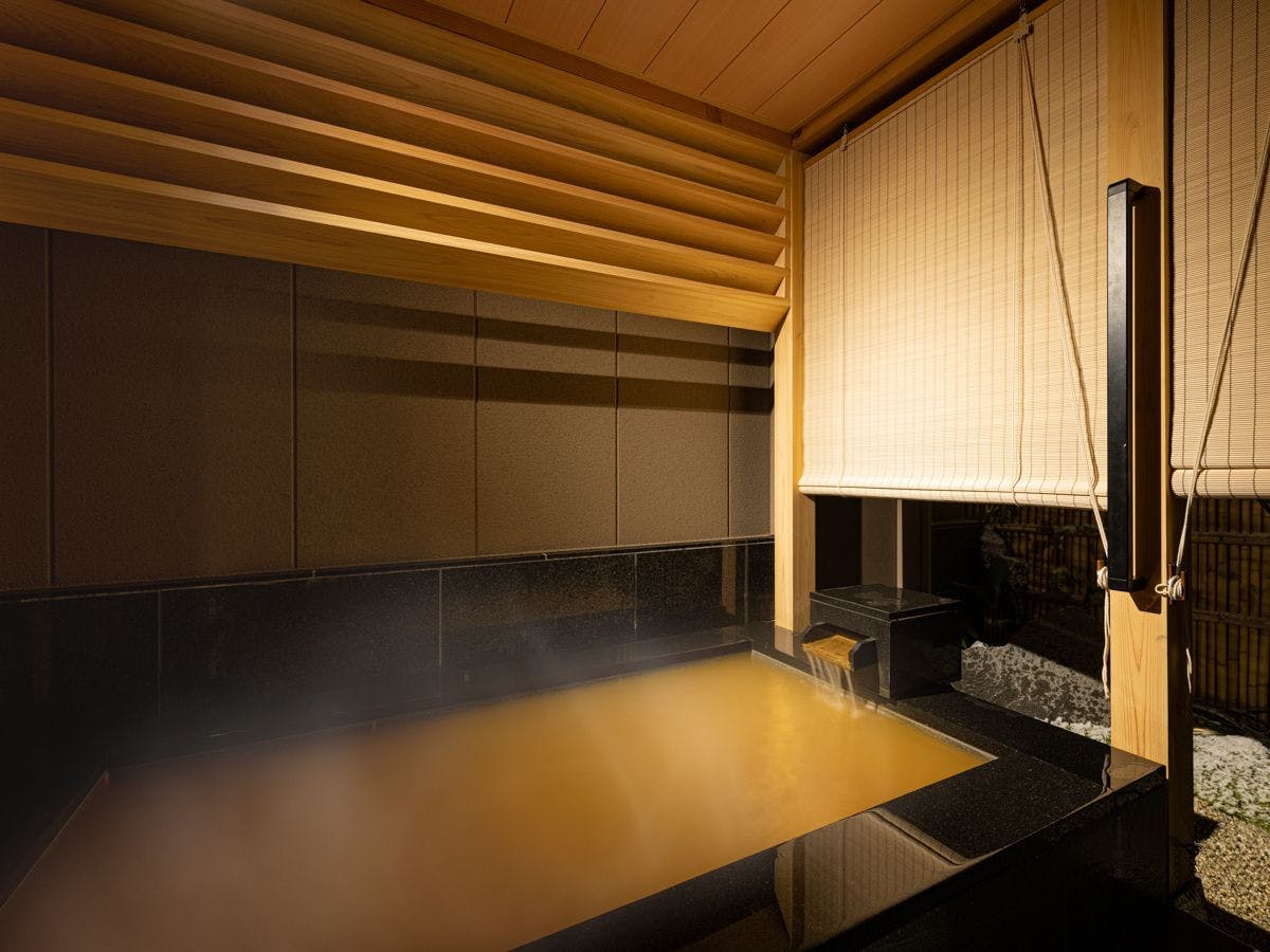 客室は全てしつらえが異なり、内湯の他に金泉を引いた露天風呂を設けたラグジュアリー感を楽しんで頂けます。