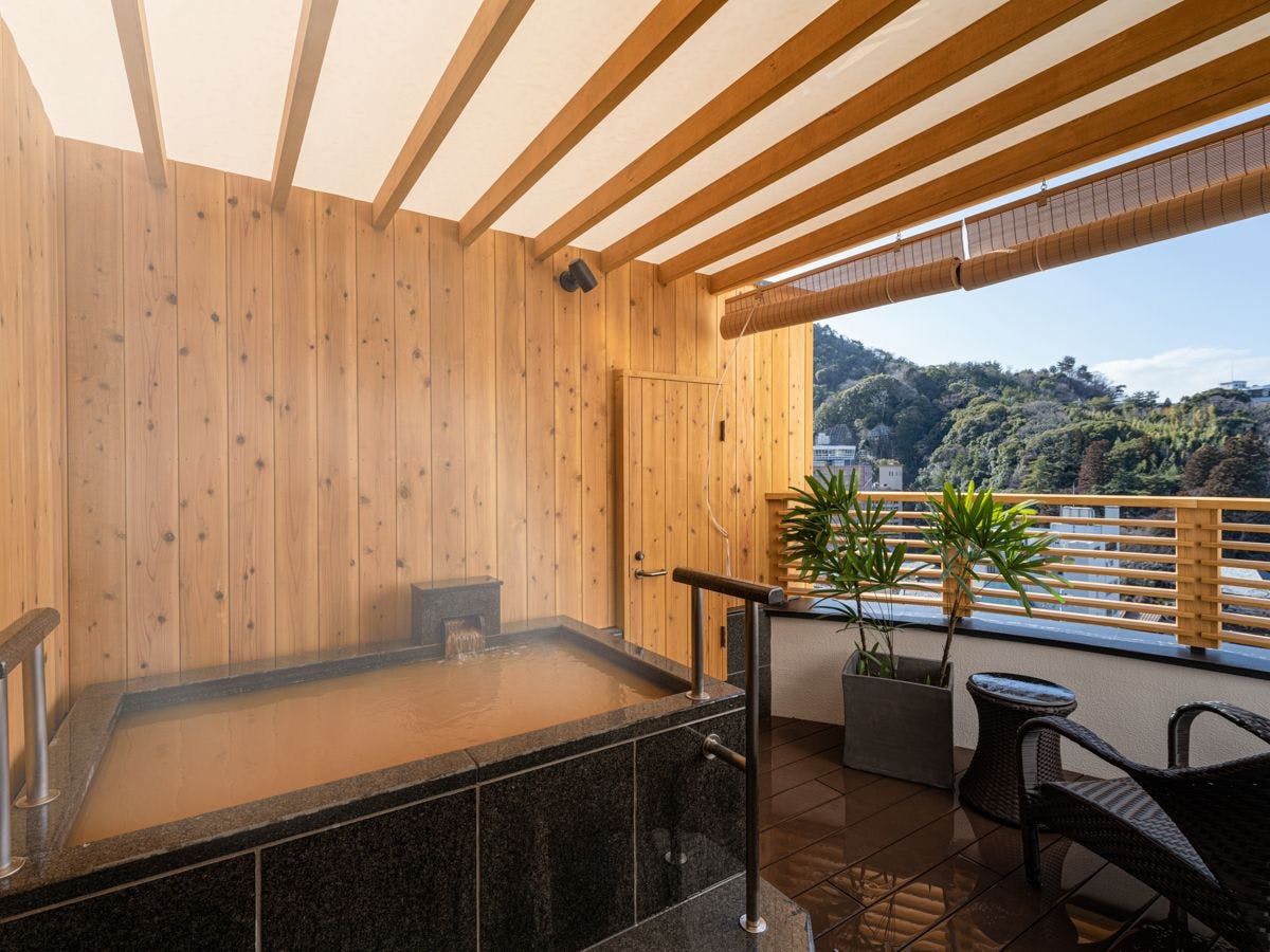 ※客室に露天風呂(温泉)があります。こちらのお部屋は内風呂がありませんが、露天風呂にドアがついています。大浴場はありません。