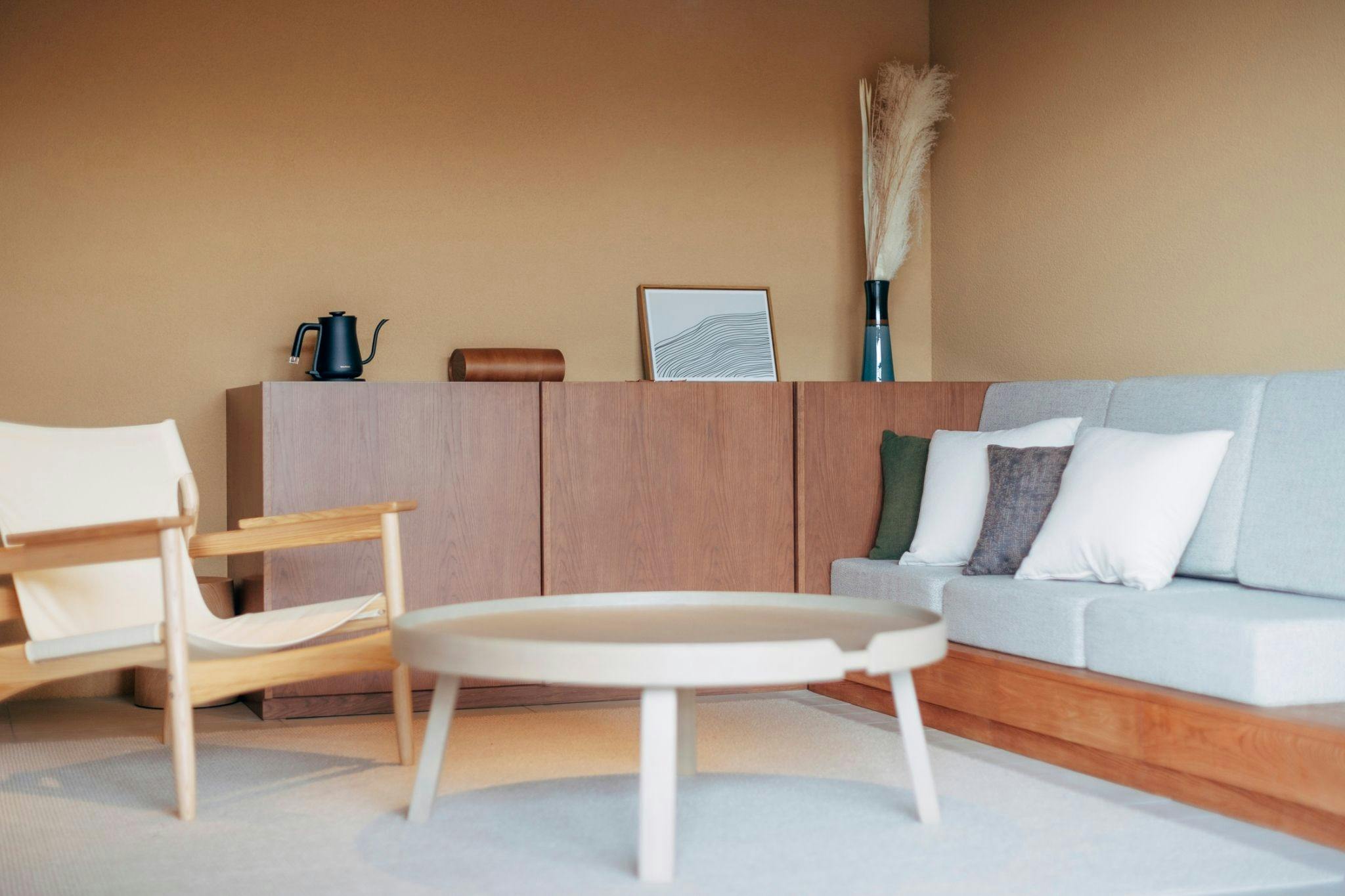 洗練されたデザインにシンプルな家具やインテリアが並ぶラグジュアリーなお部屋。屋根付きサンルームに客室露天風呂を備えた贅沢なプライベート空間が魅力。大人2名、子供3名の最大5名様までご宿泊が可能です。※大人のみのご利用の場合は3名様まで可能。※シングルベッド1台まで追加可能です。