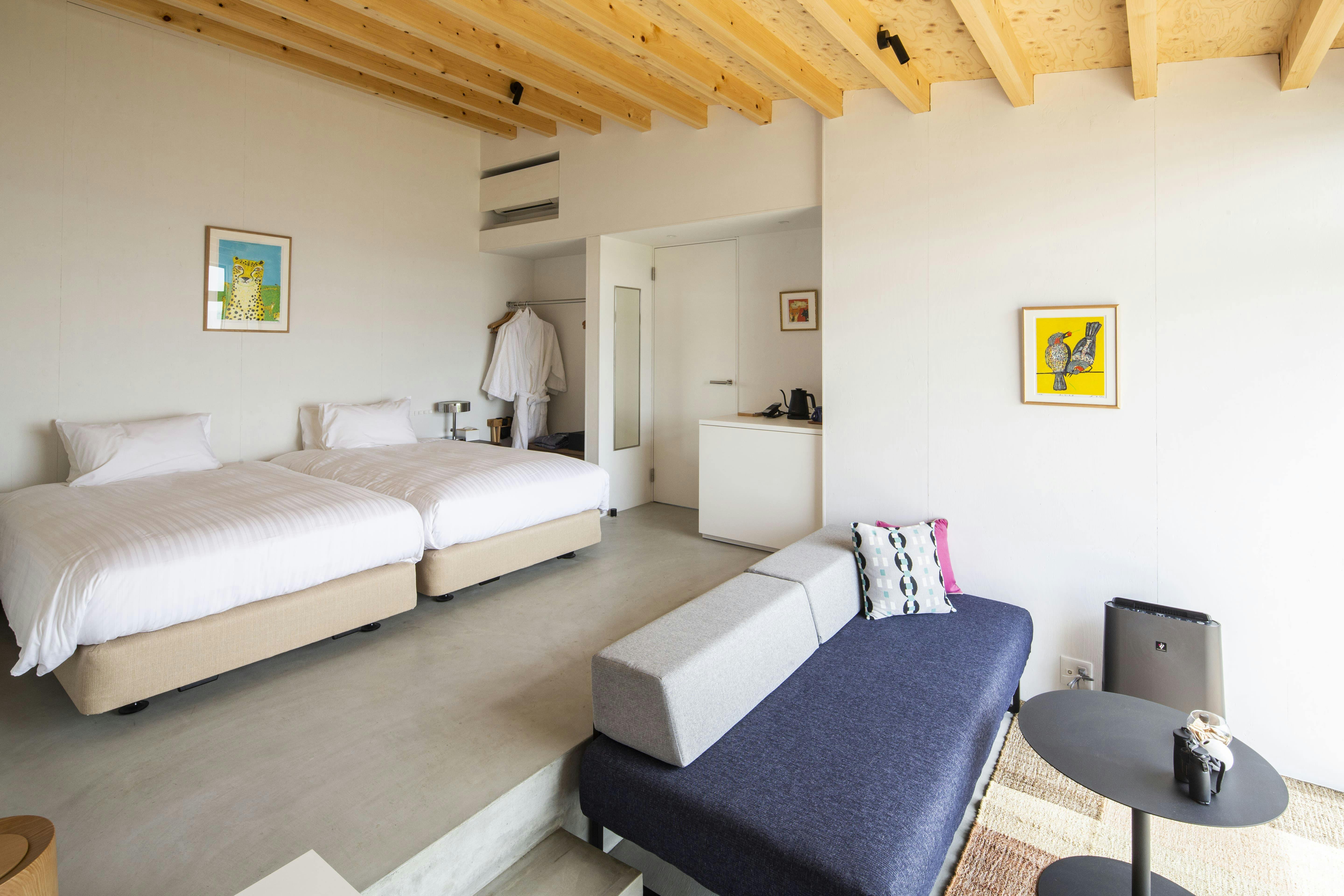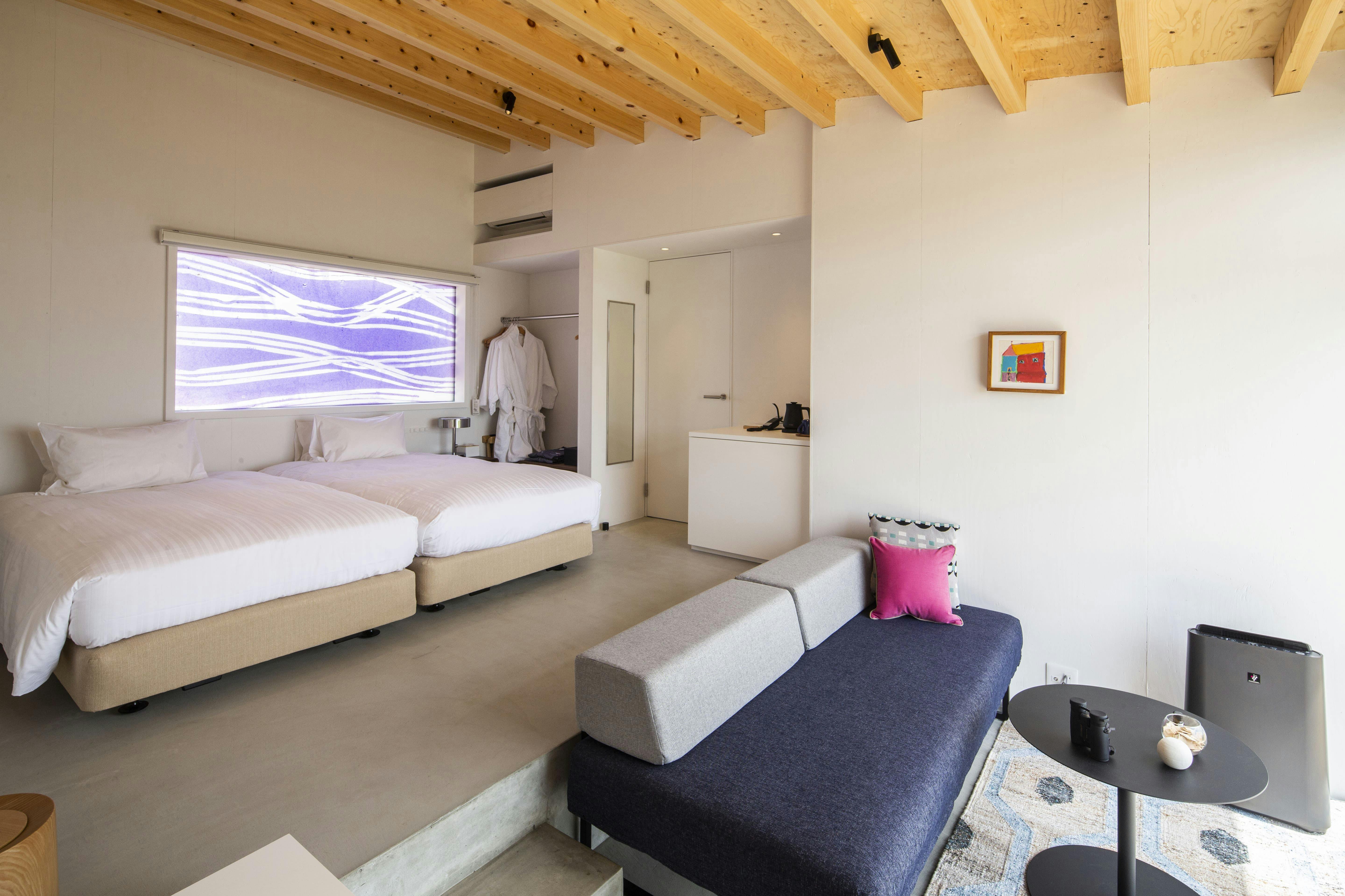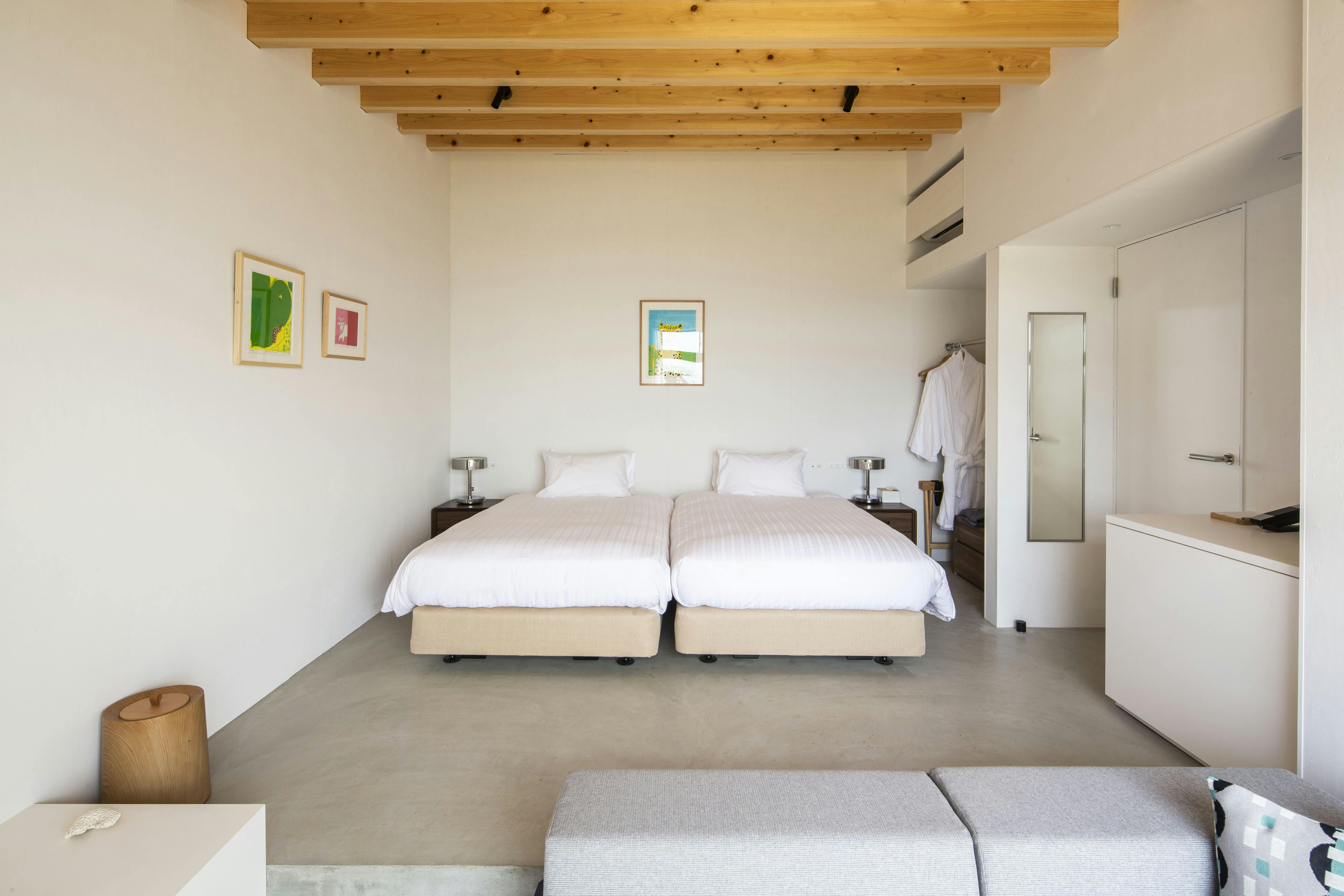 ベットルーム、リビングと天然温泉露天風呂、専用ダイニングテラスから全ての視線がオーシャンビュー。完全プライベートを重視した、和歌山すさみの自然あふれる海の景色と天然温泉露天風呂を心ゆくまでご堪能ください。3名様でのご利用の際は、1ベッドのみソファベッドにて対応させていただきます。
