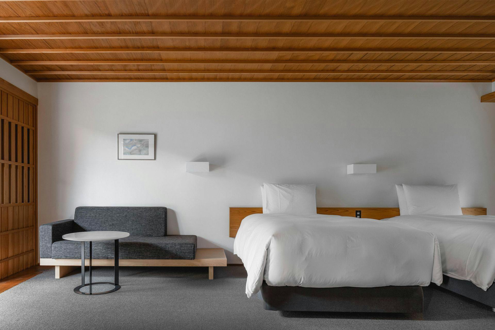 現代的かつ洗練された空間の中に伝統的な和の要素を取り入れた趣あるお部屋です。開放的なリビングスペースと、畳敷きの就寝スペースに加え、檜の香り漂う内風呂を備えています。眼前に広がる水盤や松林との一体感お楽しみください。