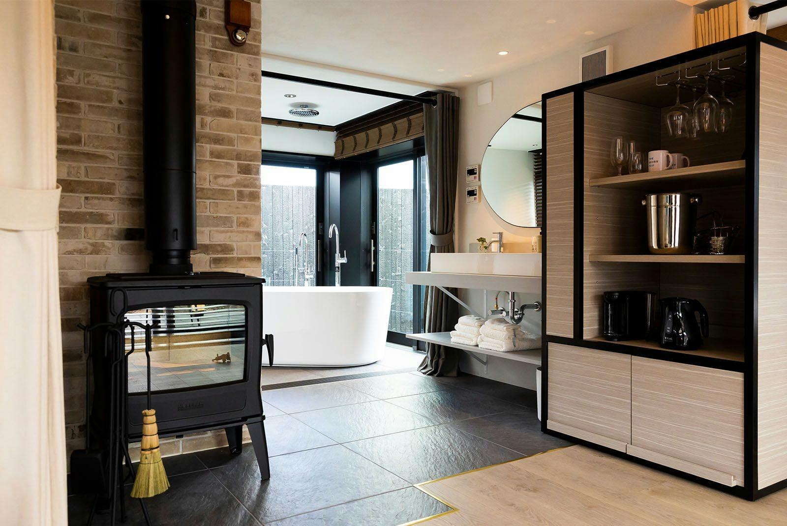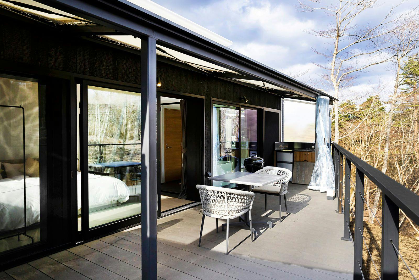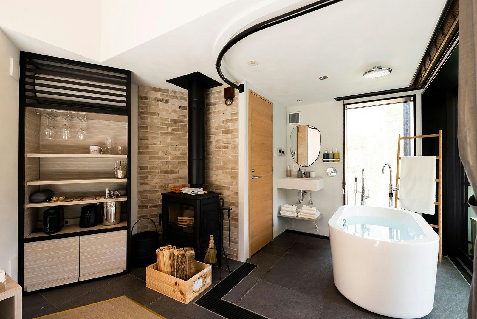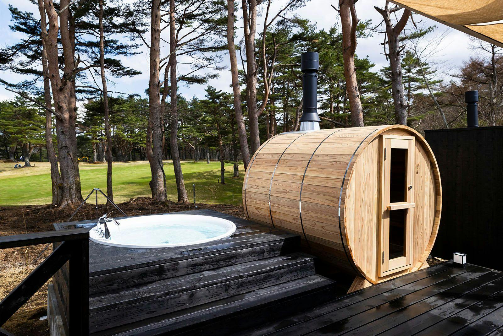 各部屋には専用の薪サウナを備え、プライベートなサウナ時間を満喫できます。