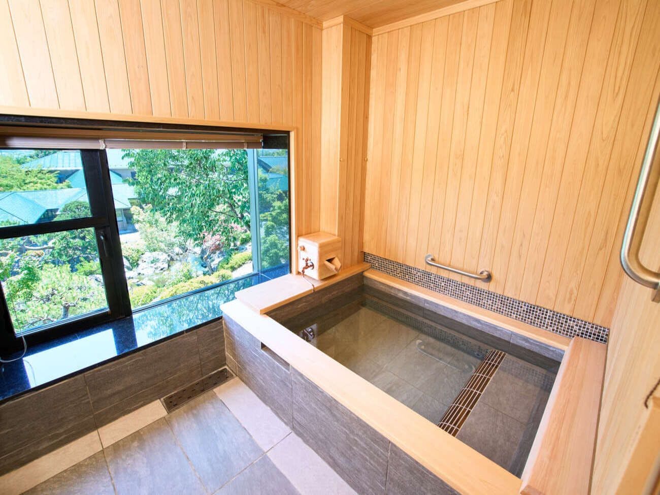 伝統的な日本家屋の仕立てにモダンな要素を加え、「自然のささやき」を感じるお部屋。全室「源泉掛け流し」のお風呂があり、心身ともにゆったり豊かに潤います。