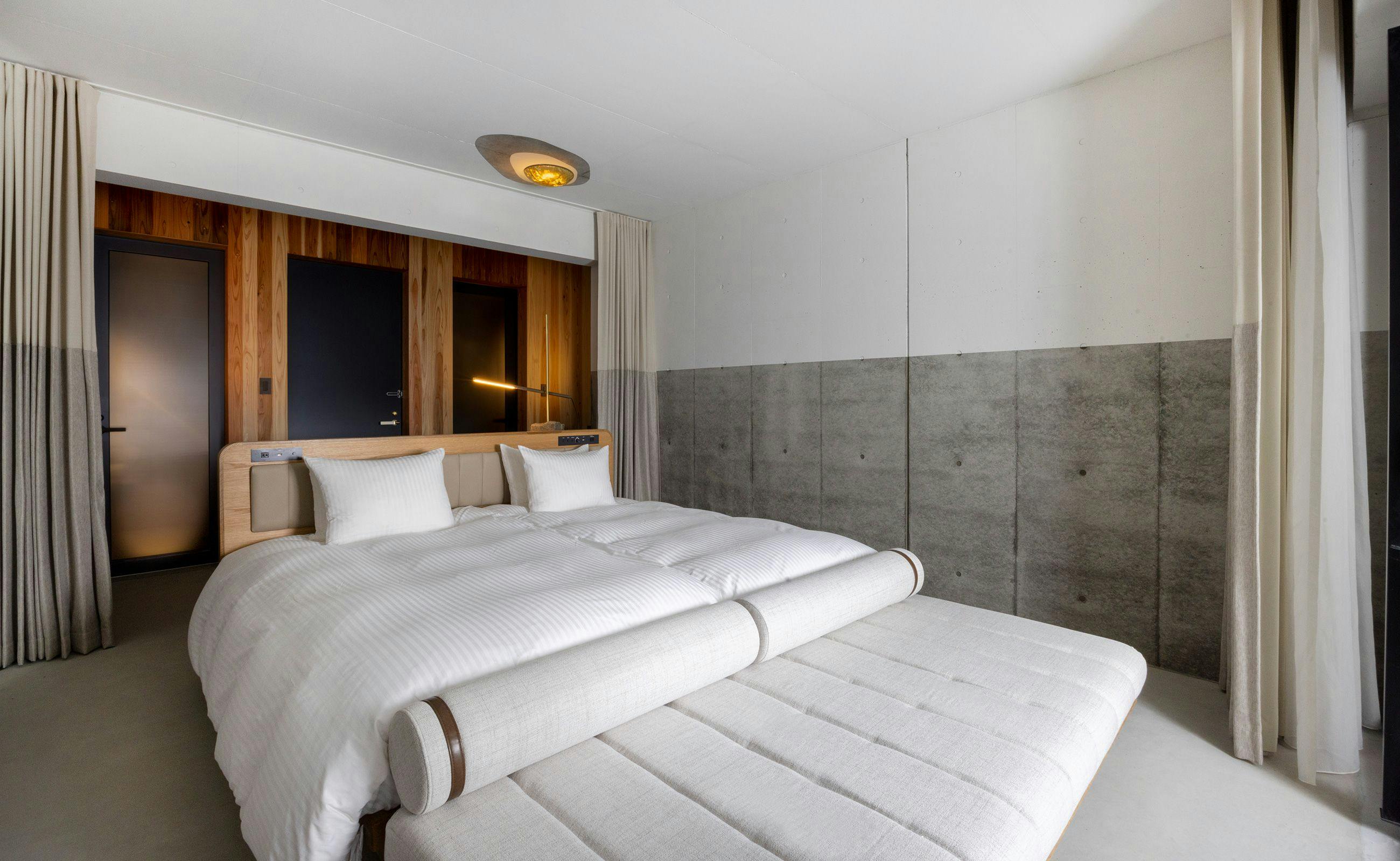 プリミティブな自然素材を使用し、眠りの質を追求したマットレス、やさしい触り心地のバスタオルや自然な眠りに導く照明など、安らぐ空間でお寛ぎください。