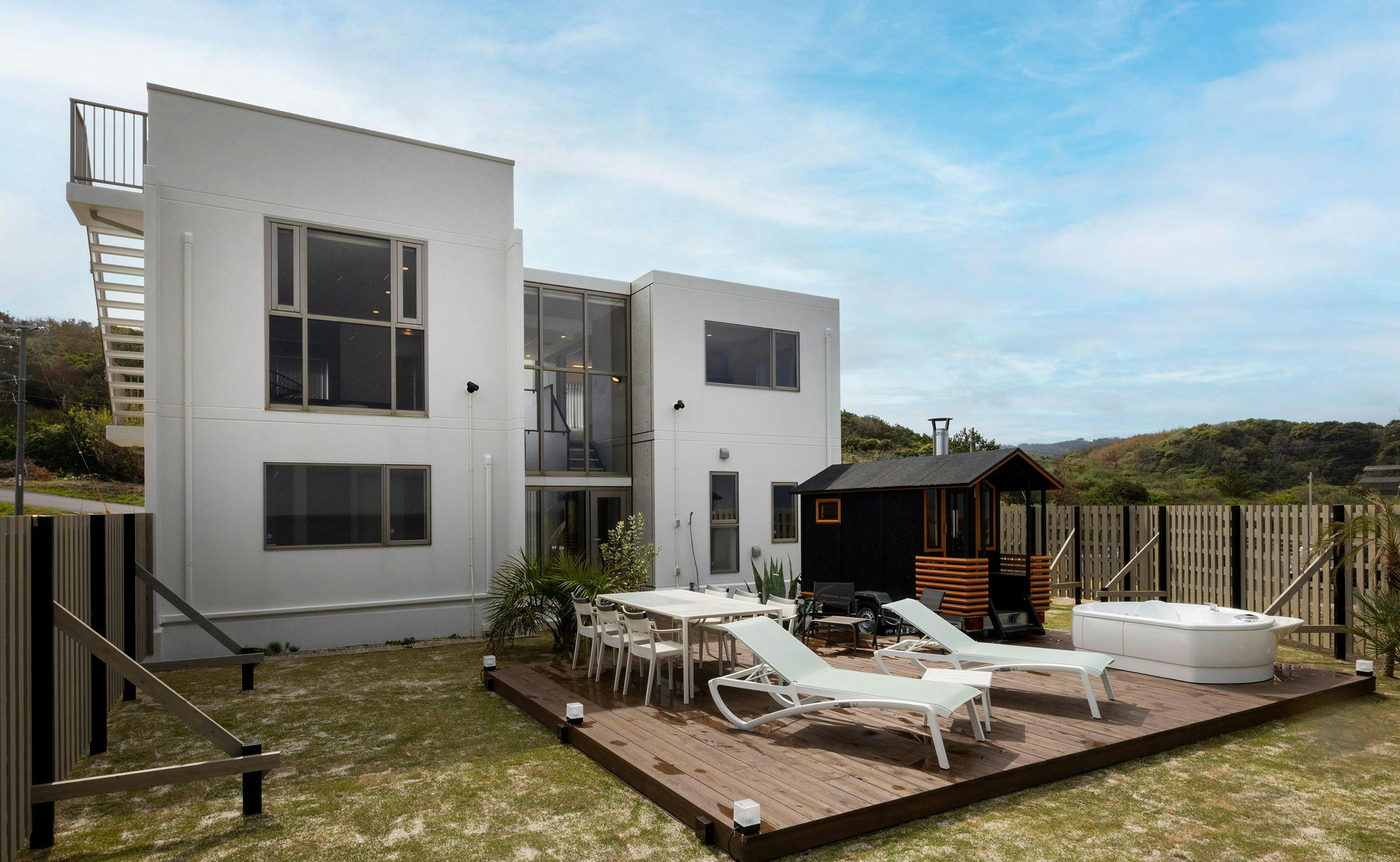 テラスには、ヴィラ ワンダラストのゲストのみの専用薪式サウナとジャグジーを設置。