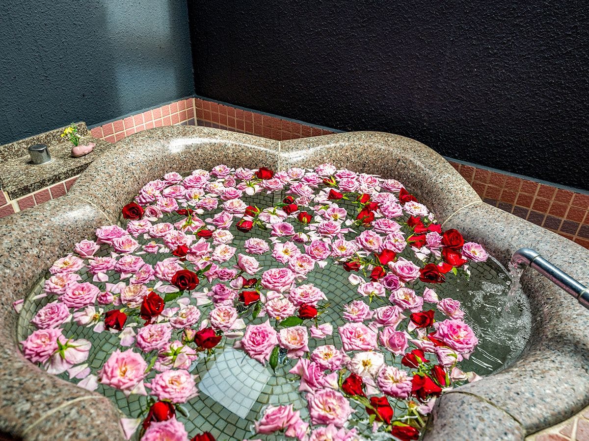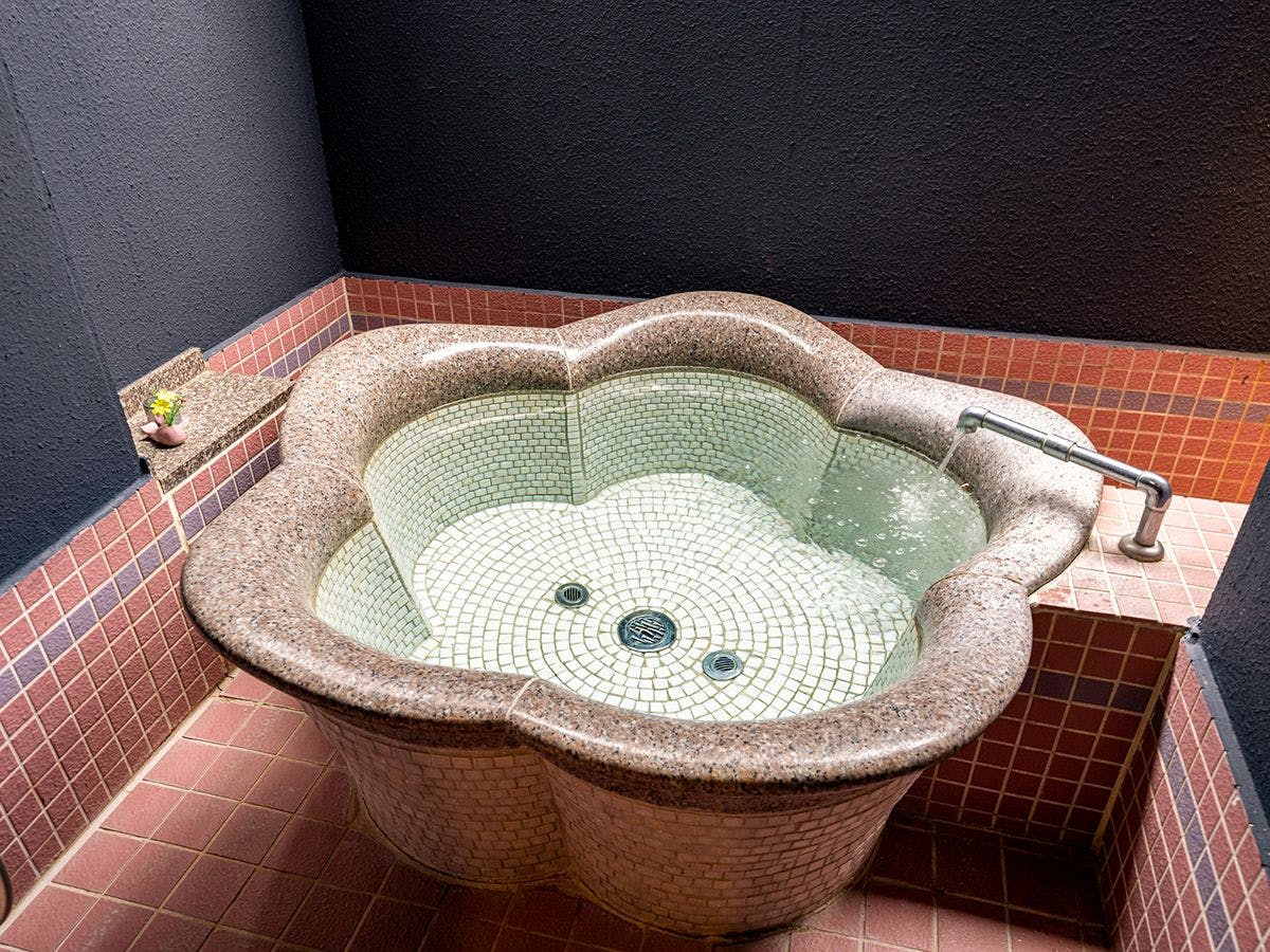 和室10畳+半露天風呂。1階のお部屋ですが窓から太平洋も望めます。部屋名にふさわしい花形の露天風呂を設置。フラワーバスオプション可能(5,000円~)■全室禁煙、無料Wi-Fi■客室設備:テレビ、冷蔵庫、個別空調、湯沸かしポット、ドライヤー、金庫■アメニティ:タオル、バスタオル、歯みがきセット、カミソリ、くし・ぶらし、シャンプー・コンディショナー、ボディソープ、浴衣、くつろぎ着 等