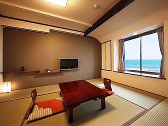 おさしみの宿たろべは、主人自ら毎朝漁港に出向き直接仕入れるこだわり。宿の目の前には澄み渡る美しい館山湾が広がり、さらに太平洋へと繋がる碧いパノラマの海が望めます。