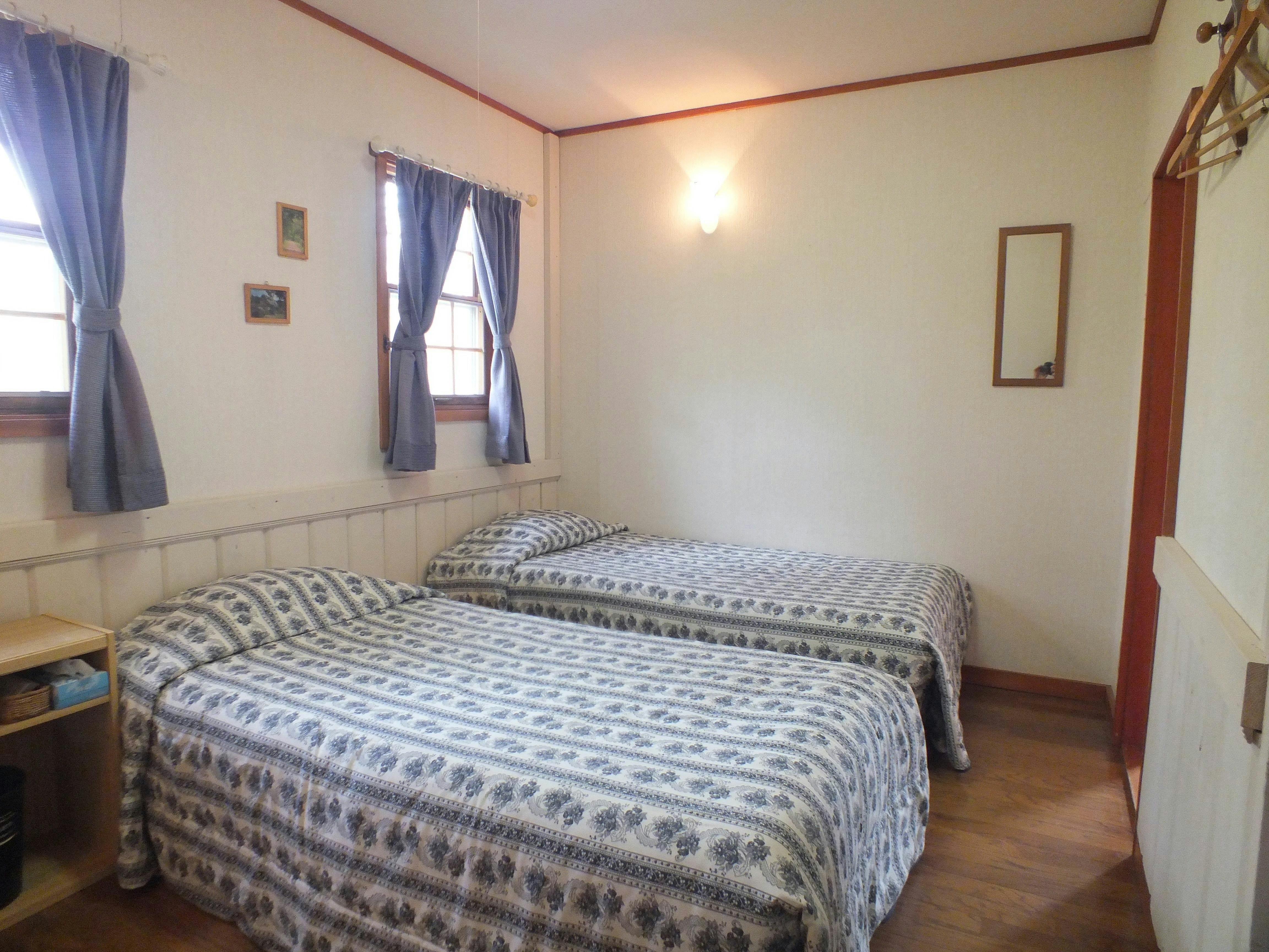 ツインルームB(禁煙)お子様ご利用可能です。シンプルですがゆっくりおくつろぎいただける癒しの空間です。