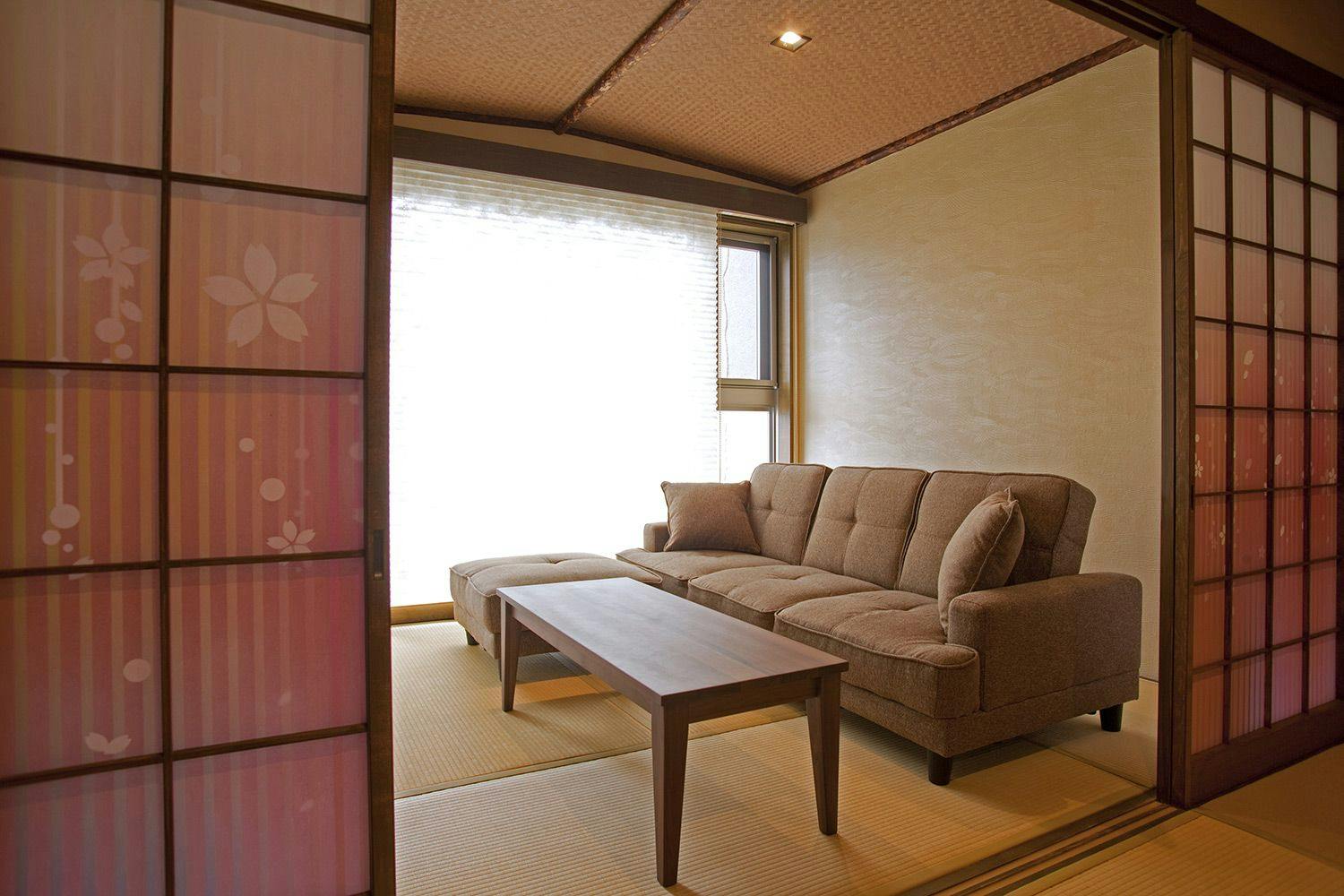 女性に人気のコンセプト客室です。カラフル障子が女子旅を盛り上げます。