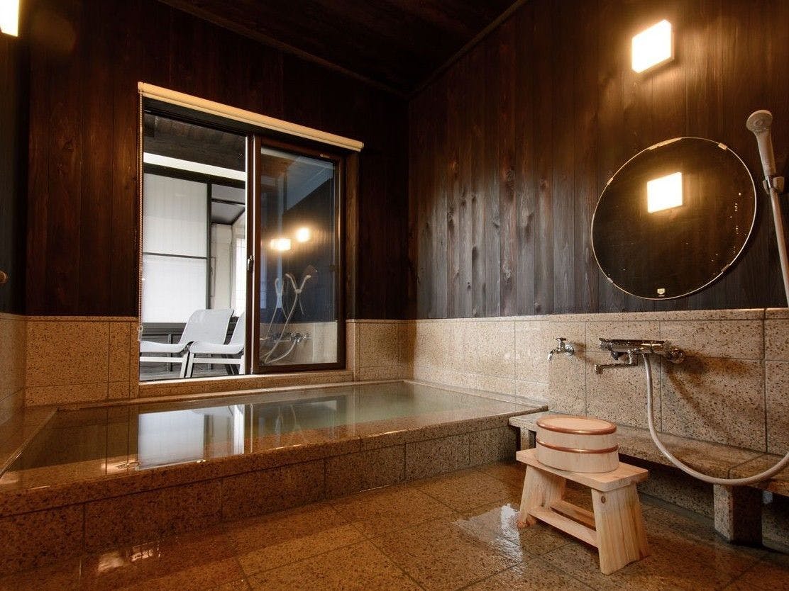 天然温泉と遠赤外線効果のラジウムタイル風呂が付いたお部屋です。お食事は本館の食事処でお召し上がりください。