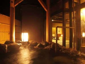 屋根付の露天タイプの浴槽には、24時間天然水のまろやかな湯が注がれます。