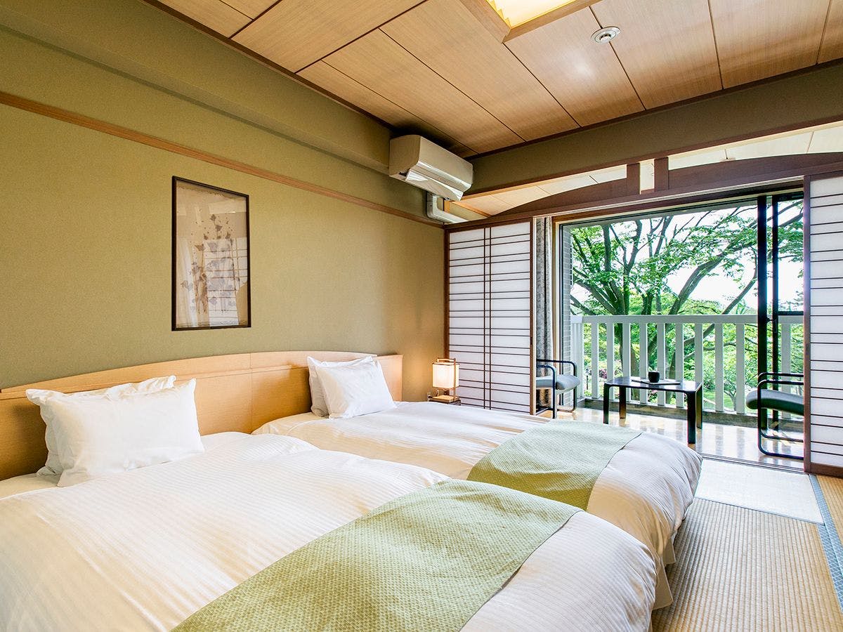 和室6畳+洋室(ツインベッド/ベッド幅110cm)+バルコニー
