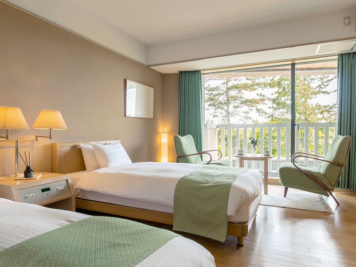 和室10畳(ツインベッド/ベッド幅110cm)+広縁+バルコニー