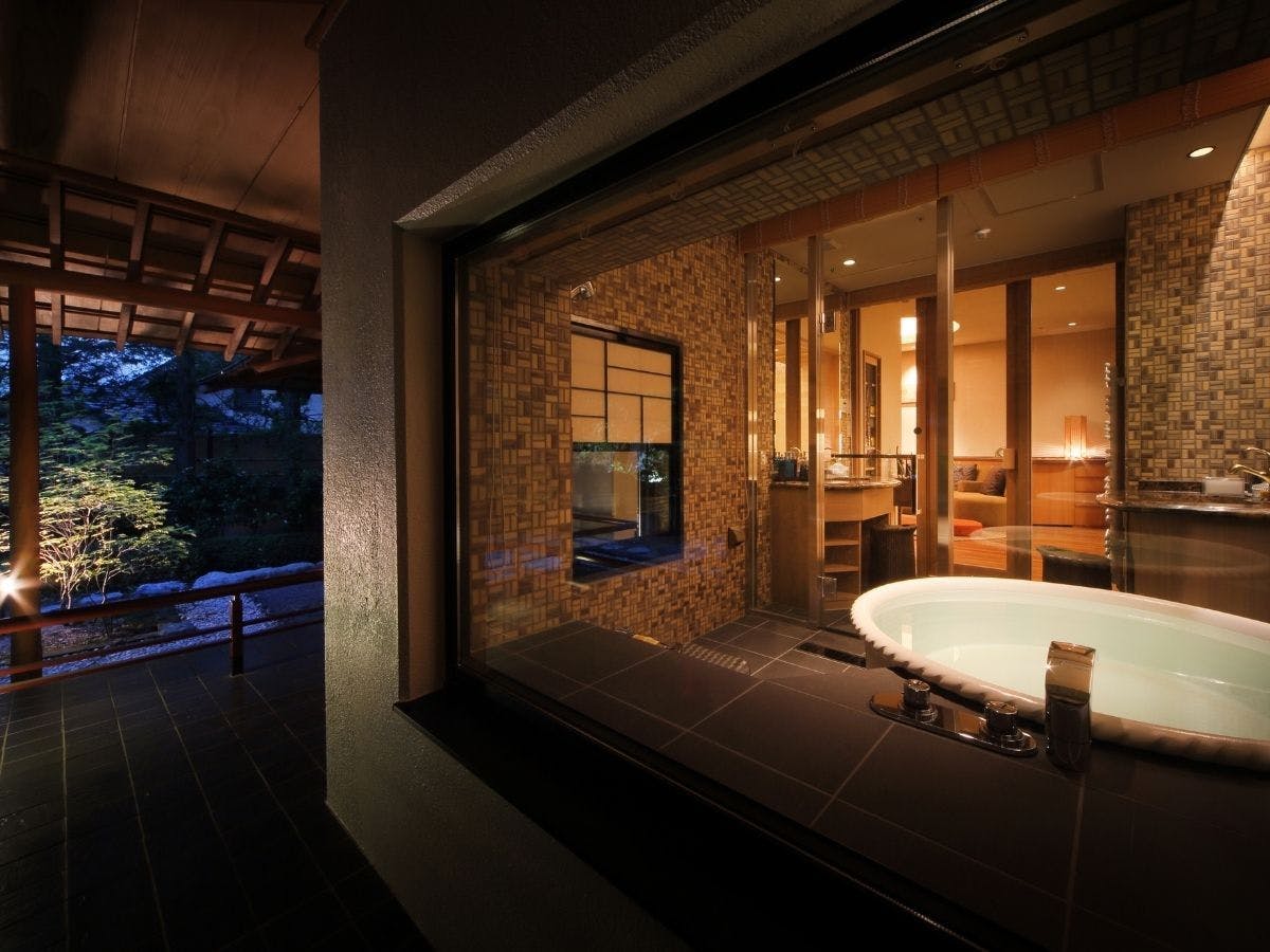 四季折々の風情を醸し出す大きな日本庭園を囲む本館、別館からなる高台のホテル。大浴場や5つの貸切露天風呂を備え、館内で湯巡りをお楽しみ頂けます。館内でごゆっくりお過ごししたい方にお勧めの宿です。