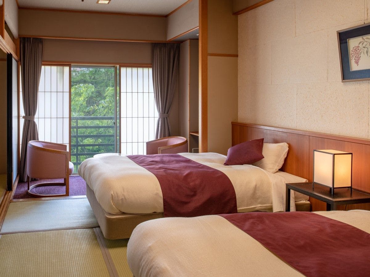利根川に面したツインベッドの和洋室と10畳和室を備えた客室、低層階(※階数指定不可)でのご案内が基本となる部屋タイプです。
