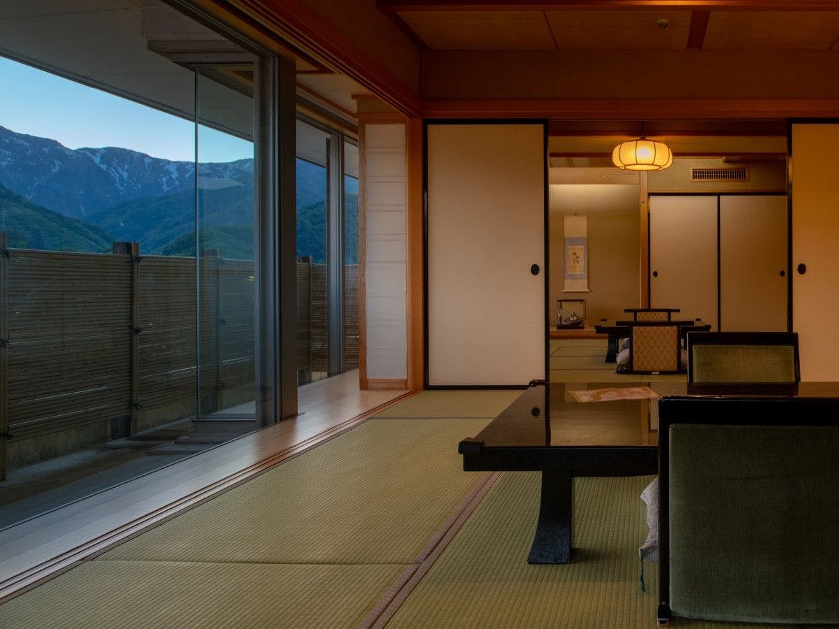 当館最上階の角部屋に位置し、谷川岳と利根川を望める貴賓室でのご案内になります。