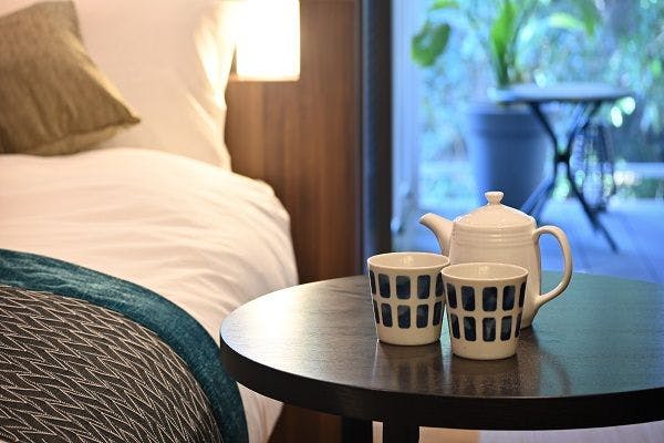 プライベートテラス+リビング+ツインベッド+陶器風呂(半露天温泉付)<準バリアフリー対応>