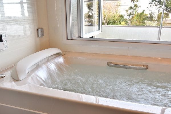 大型サイズの陶器風呂と浴室からも出入りできる開放的なウッドテラスは、ご家族でのご利用にも最適です。こちらは準バリアフリーに対応したお部屋で、多くの方に安心・快適にお泊まりいただけます。