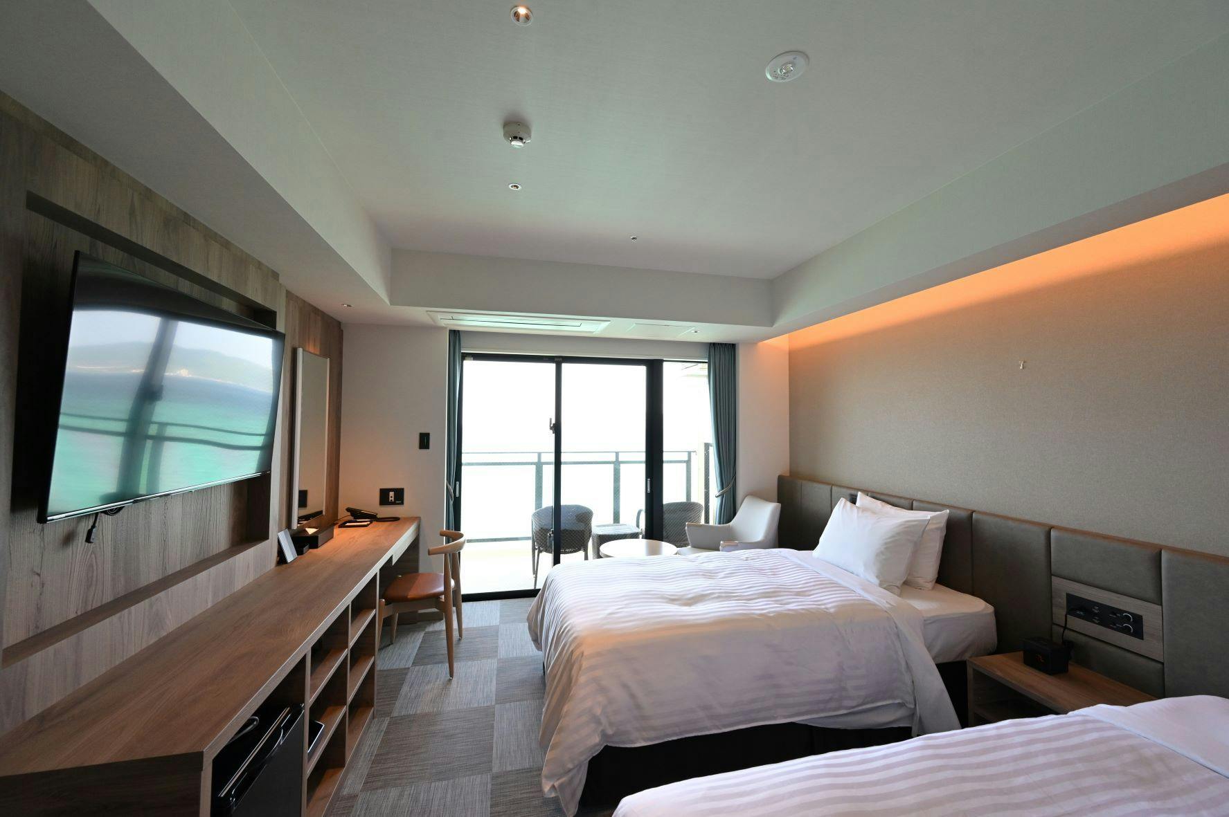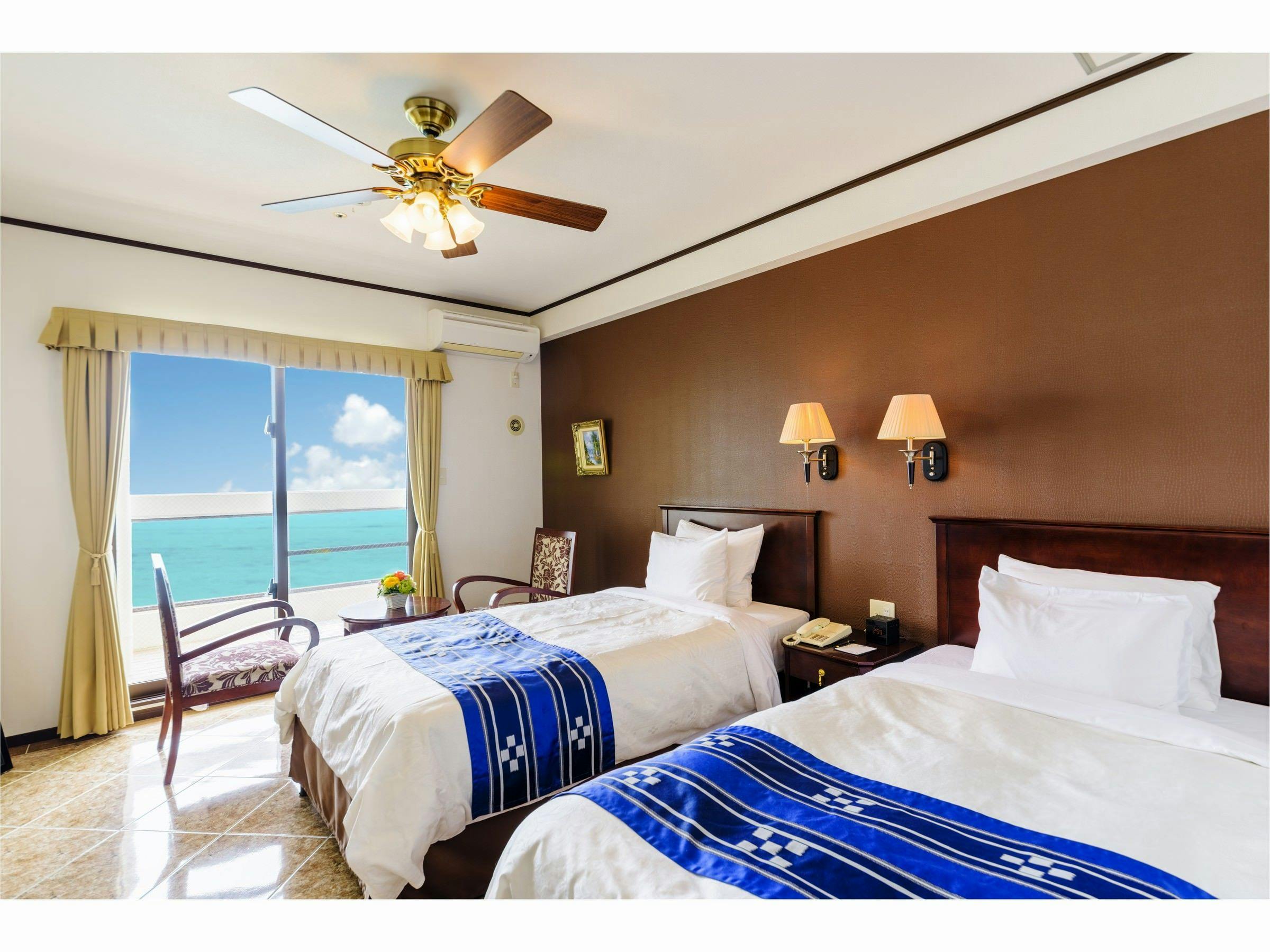 珠玉の碧い海に包まれる31平米のスーペリアツインルーム。最大3名様までご利用いただけます。木質調のインテリアと落ち着きのある照明が客室空間を演出します。エメラルドグリーンの海と雄大なサンセットを臨む開放感のある広いバルコニー。ラウンジチエアーではビーチを眺めながら優雅なひとときをお過ごしいただけます。※階数のご指定はできませんので、予めご了承ください。