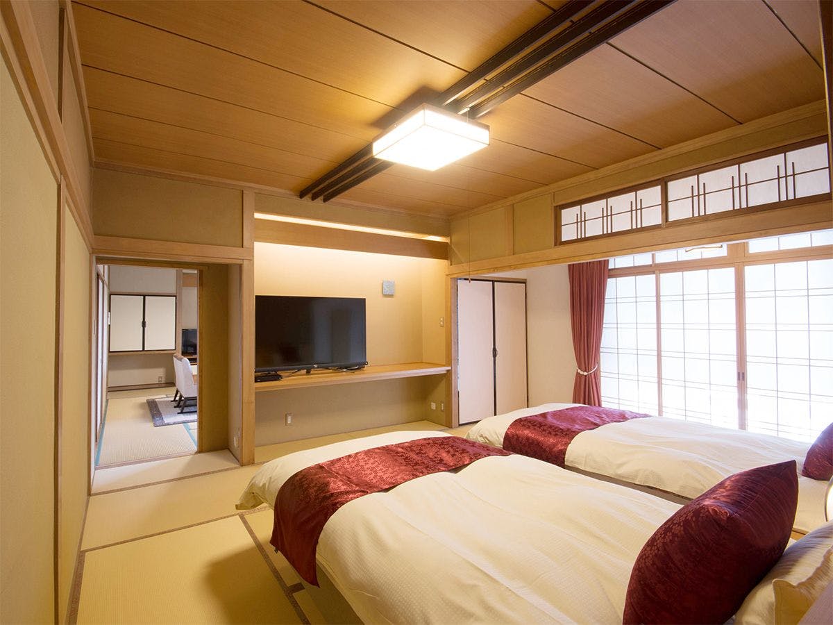 和室ダイニング10畳+ツインベッドルーム10畳+広縁+半露天風呂(2階61平米)