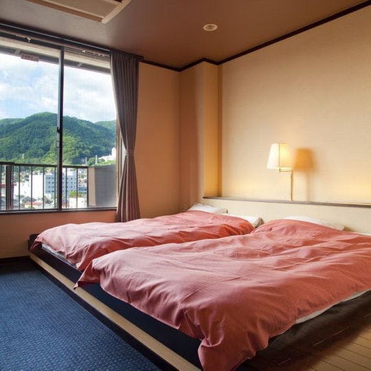 和室畳敷きにツインベッドを配置(3名以上のご利用の場合、布団敷きとなります)