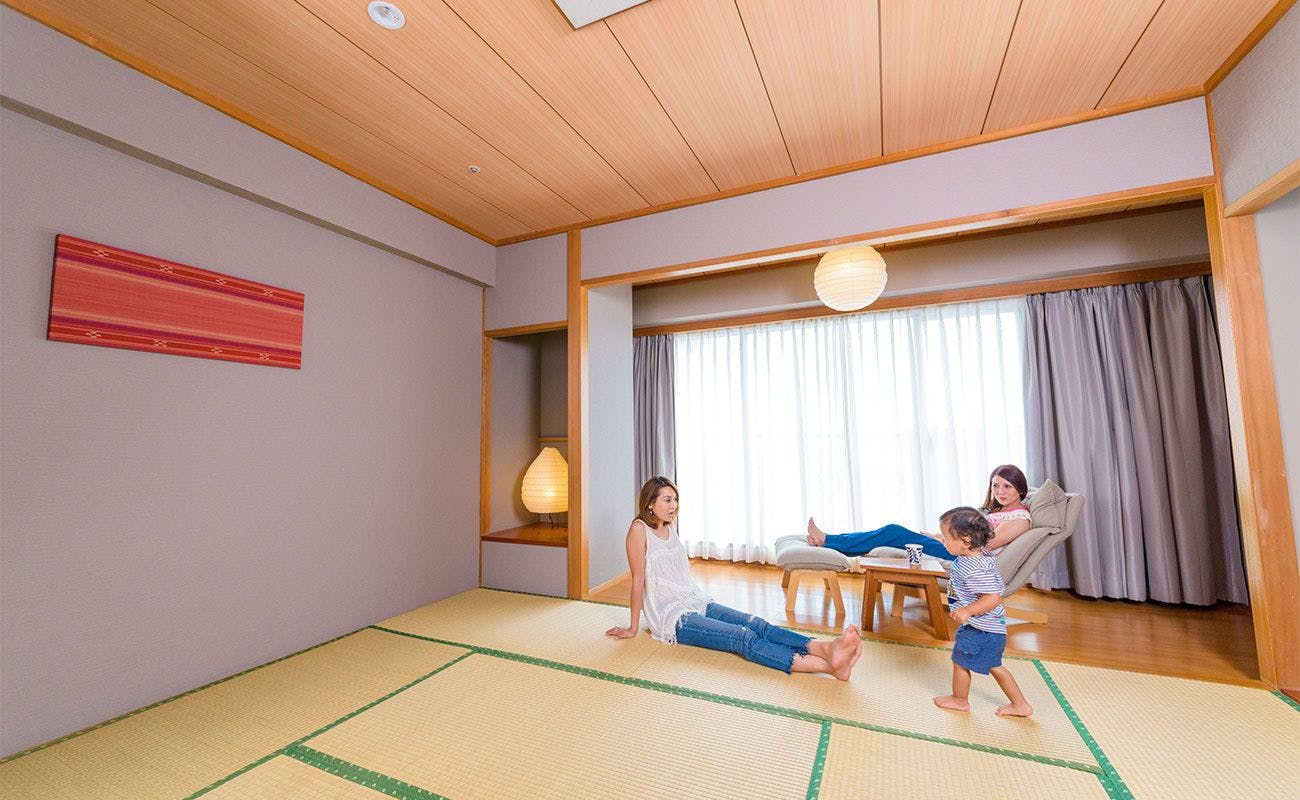 旅先でもほっとできる和室、ございます。小さなお子様連れのご家族にも安心してお過ごしいただけます。