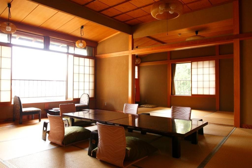当館の標準的なお部屋でございます。8畳タイプより若干ゆったりした本間で、2~4名様のご宿泊にお勧めです。お食事は二階ダイニングの個室、または個室宴会場にてお支度させていただきます。※一室の最大定員は乳幼児様を含め5名様となります。