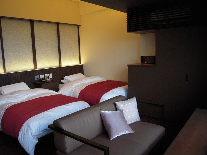 2010年6月にリニューアルされた客室です。間接照明であたたかい雰囲気をかもし出しています。※禁煙室※お子様のご利用がいただけませんシャワー・トイレ付