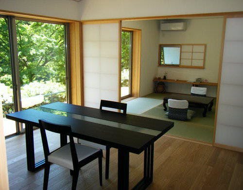 禁煙ルーム、内風呂付き、床暖房付き当館に2棟のみの、内風呂付きの離れ客室です。8畳の和室に6畳のダイニングテーブル。床暖房も完備しており、室内は冬でもぽかぽかです。