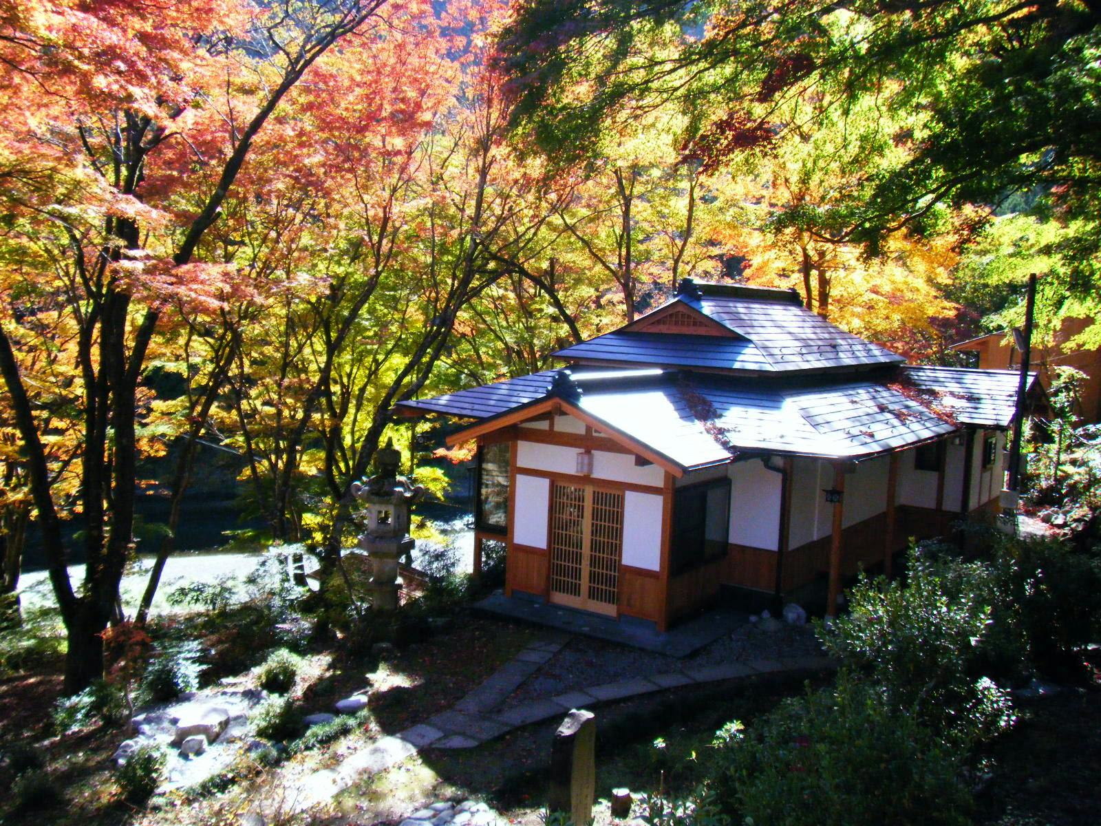 奥多摩にある老舗料理旅館。3000坪の庭園には7種類の楓が植えてあり、秋には色とりどりの紅葉が楽しめる。客室から眺める多摩川の渓流は魚の姿も確認出来るほど透明度が高く、心が洗われるほどの自然です。
