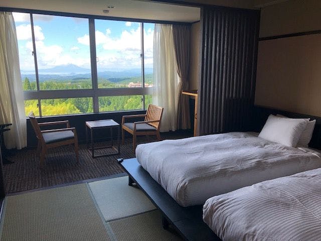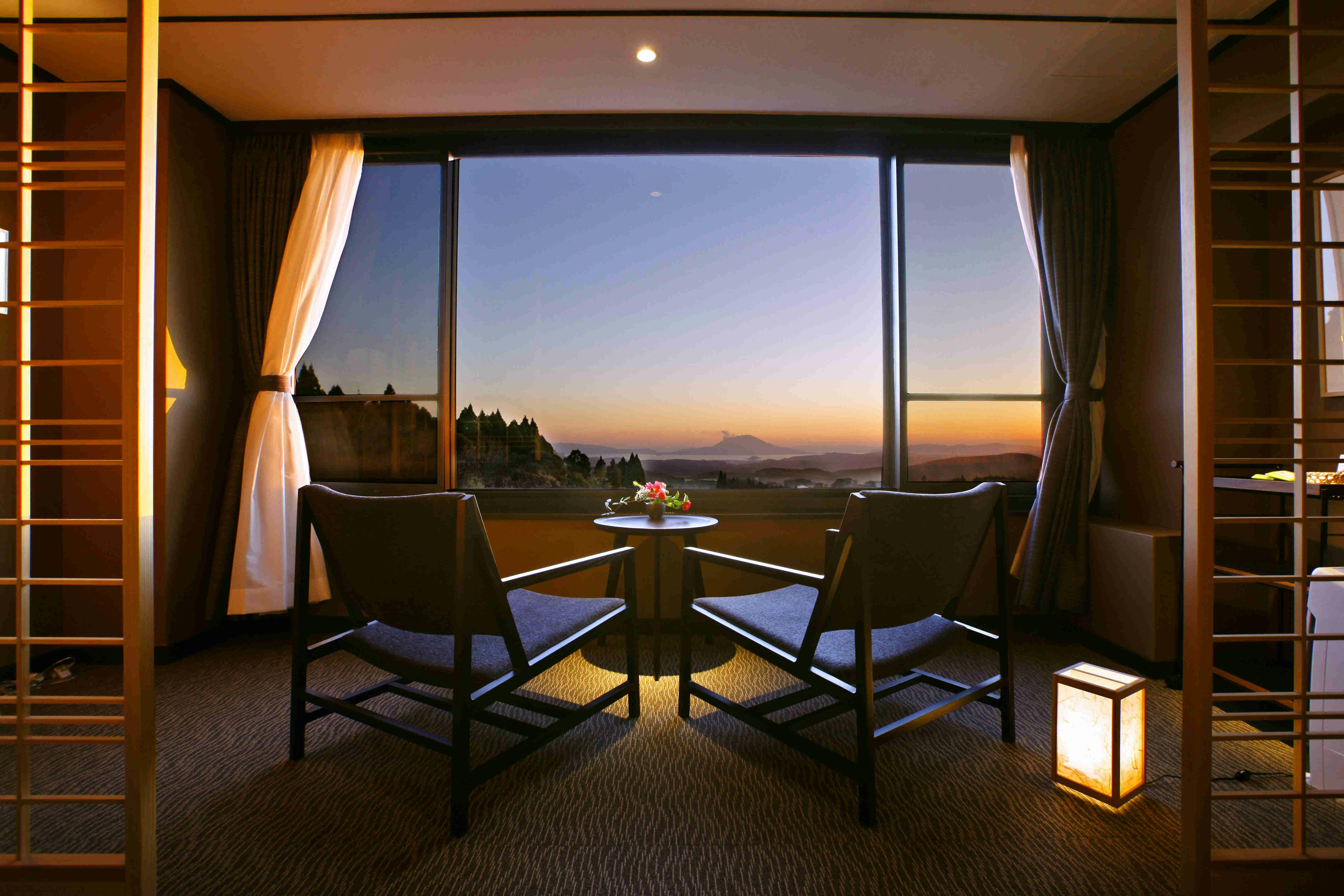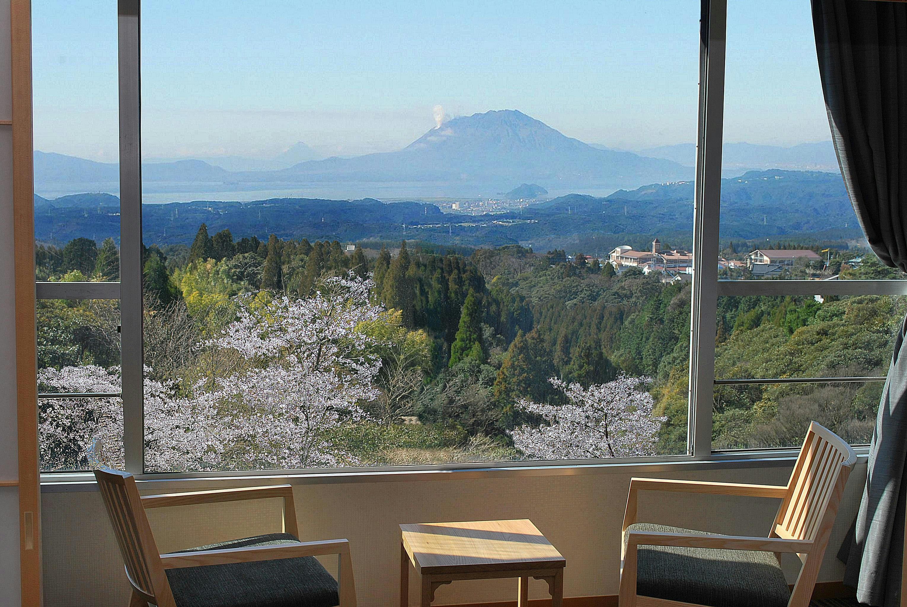快晴時には、お部屋の窓からは霧島の湯けむりが眺められ、