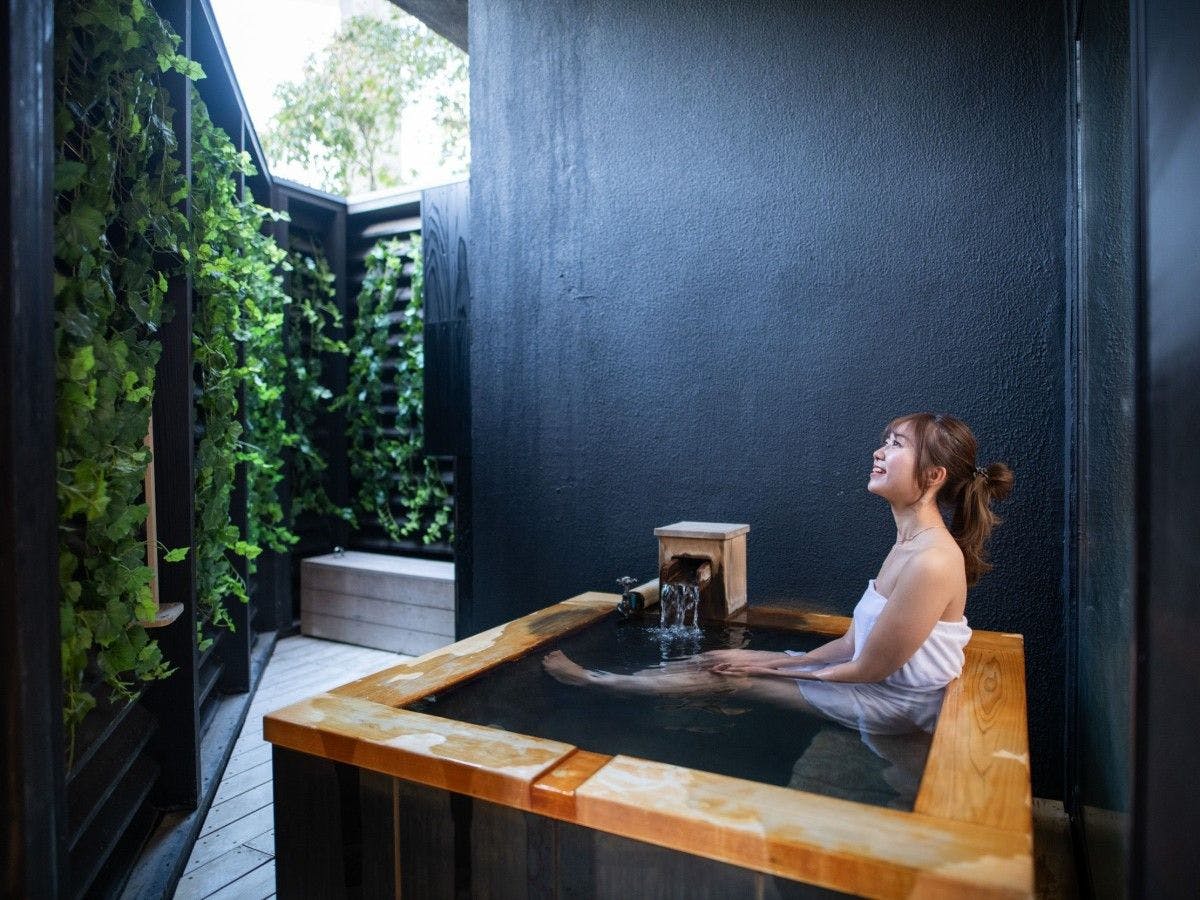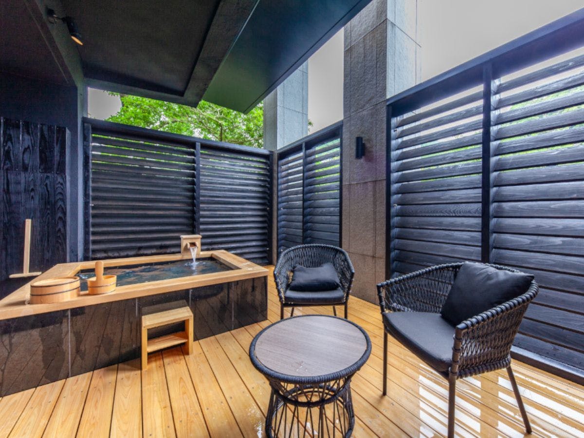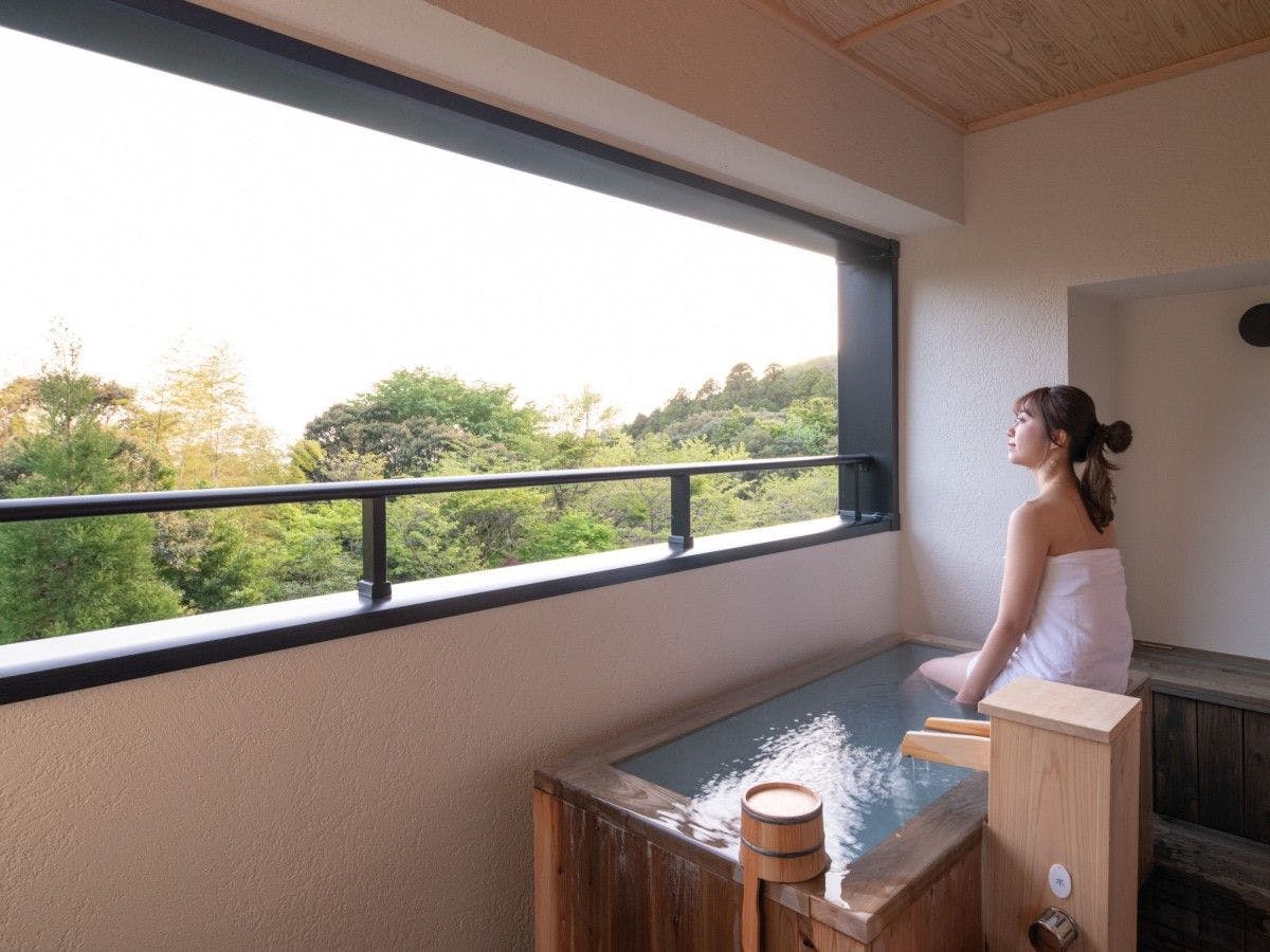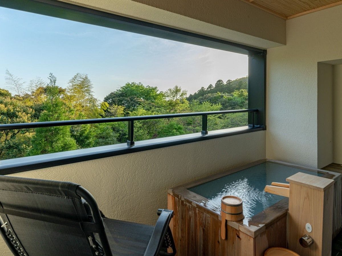 バルコニー付きの広々とした露天風呂ブースが付いており、
