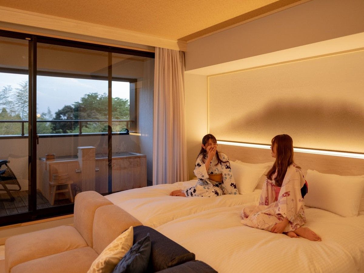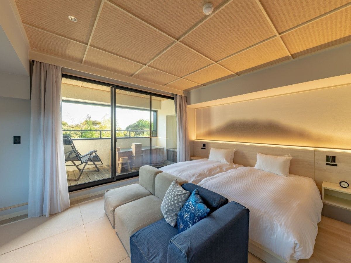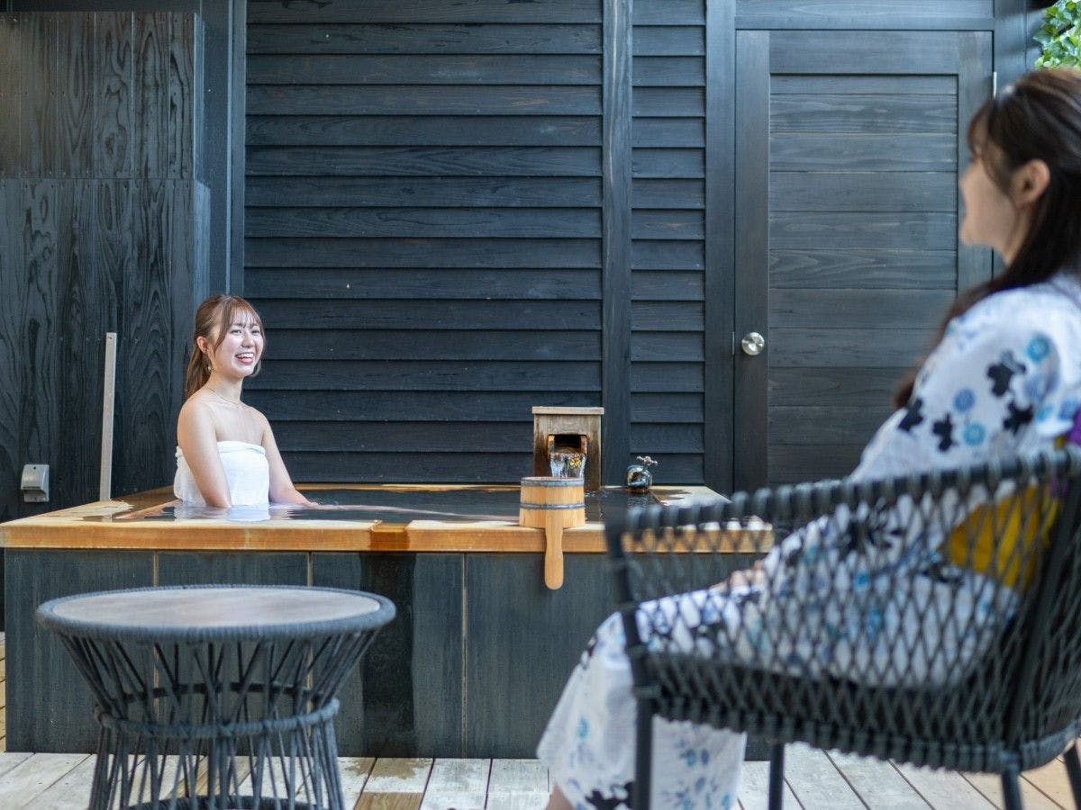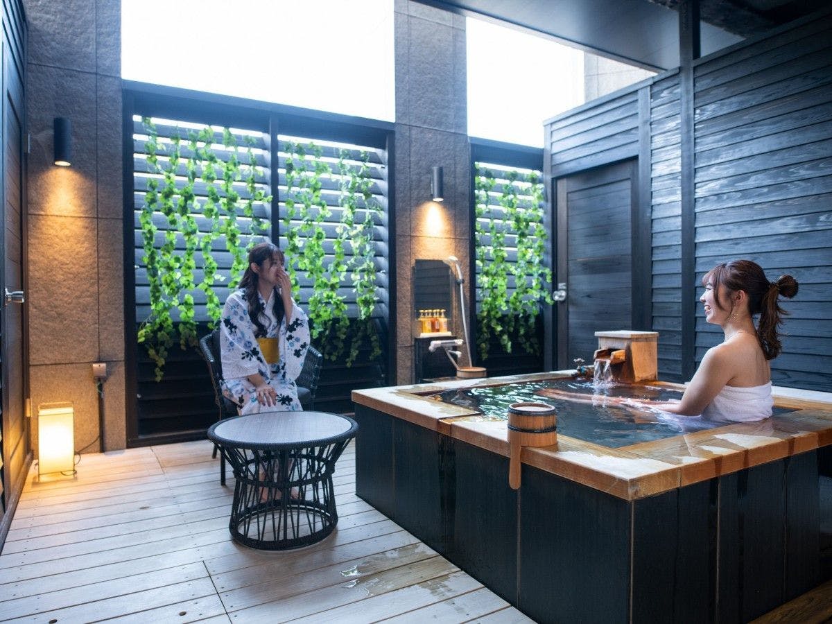 バルコニー付きの広々とした露天風呂ブースが付いており、