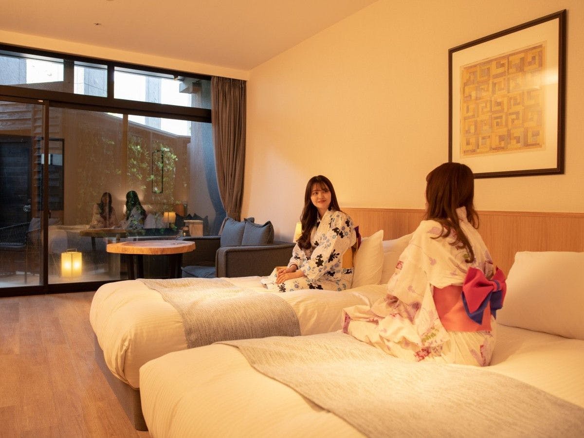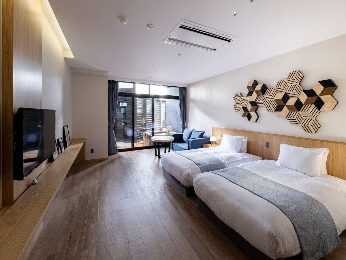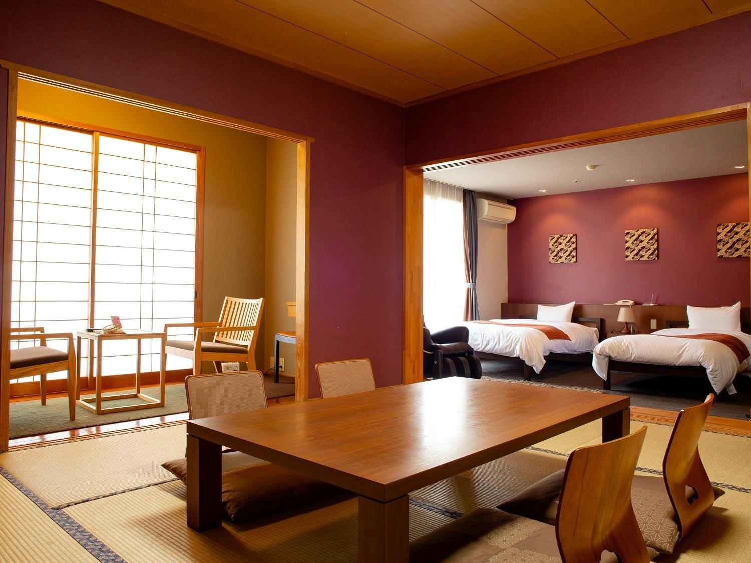 和室8畳+ツインからなるグループでのご旅行におすすめの客室です!