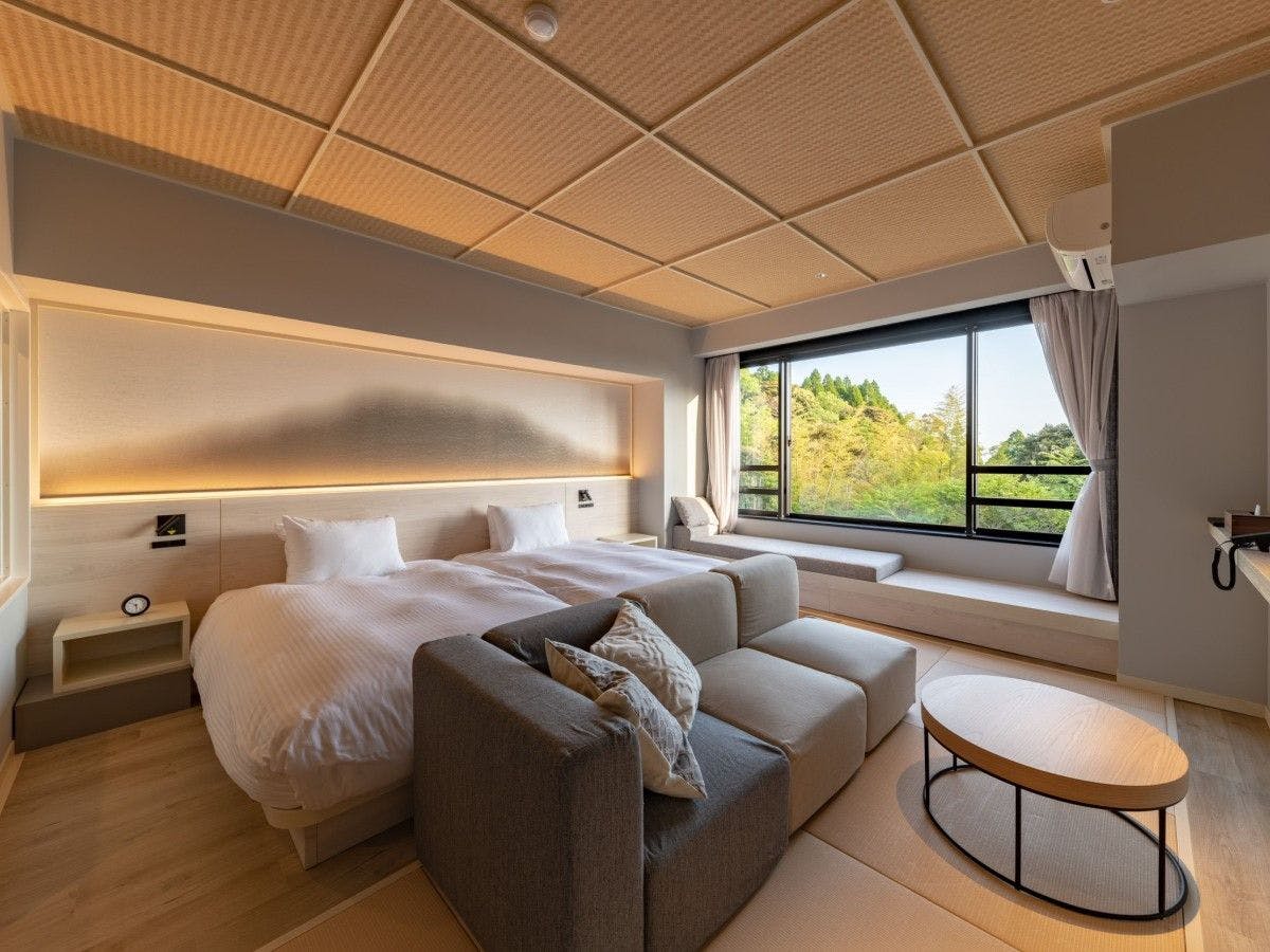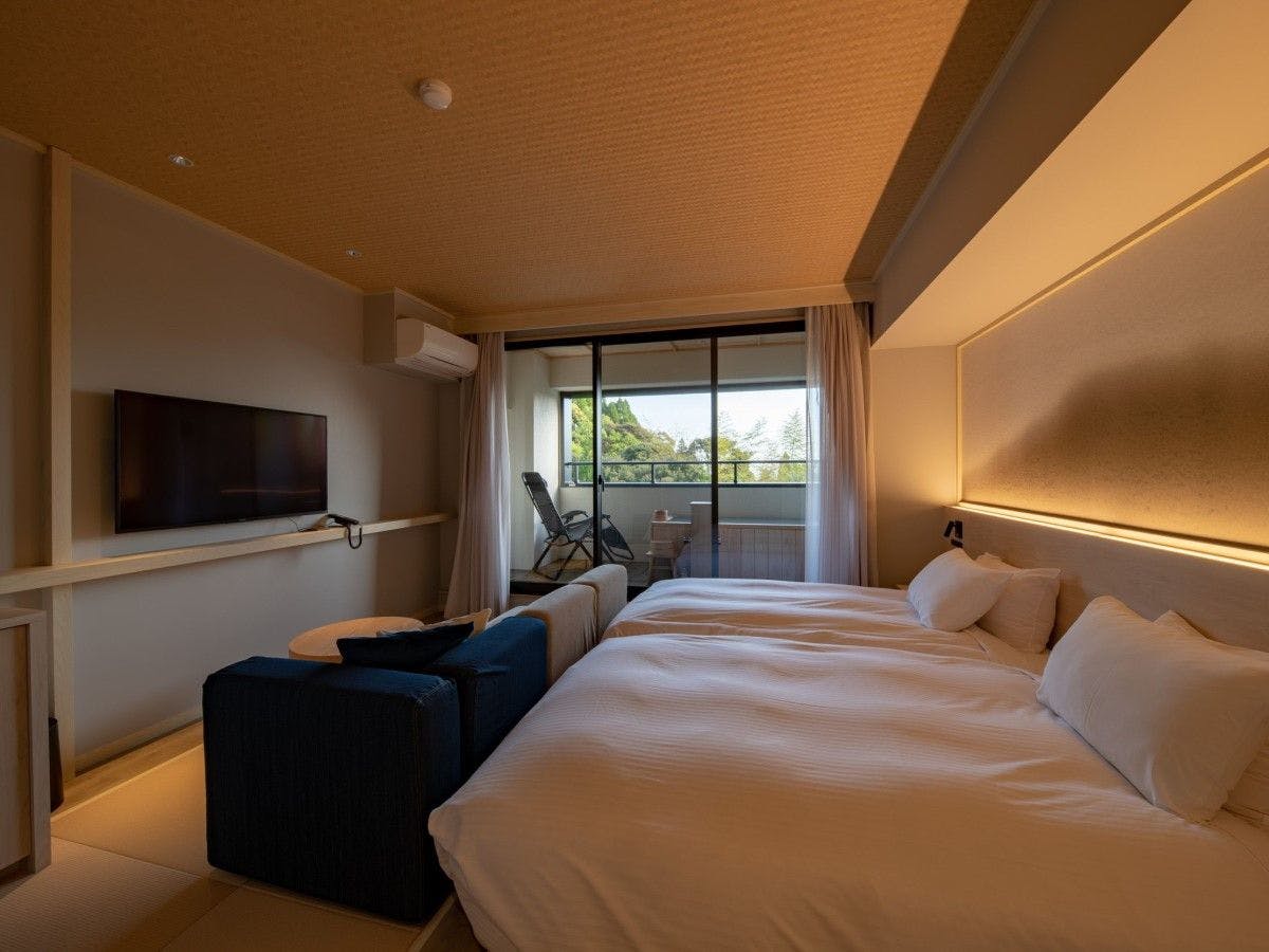 モダンな畳がミックスされたあたたかく居心地のよい客室です。