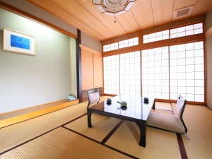 壁または襖で仕切られた二間続きの禁煙特別室です。ご家族・団体様にお勧めの客室です。人気のお部屋なので、ご予約はお早めに※加熱式・電子タバコも含めご利用いただけません。※壁または襖はお選びいただけません。■上階で、四季折々の山の表情を臨むお部屋。■5名様以上でのご利用がお得です。■お食事部屋はお部屋又は個室になります。※お選びいただけません。■冷暖房・バス・トイレ(ウォッシュレット有)・寝具完備