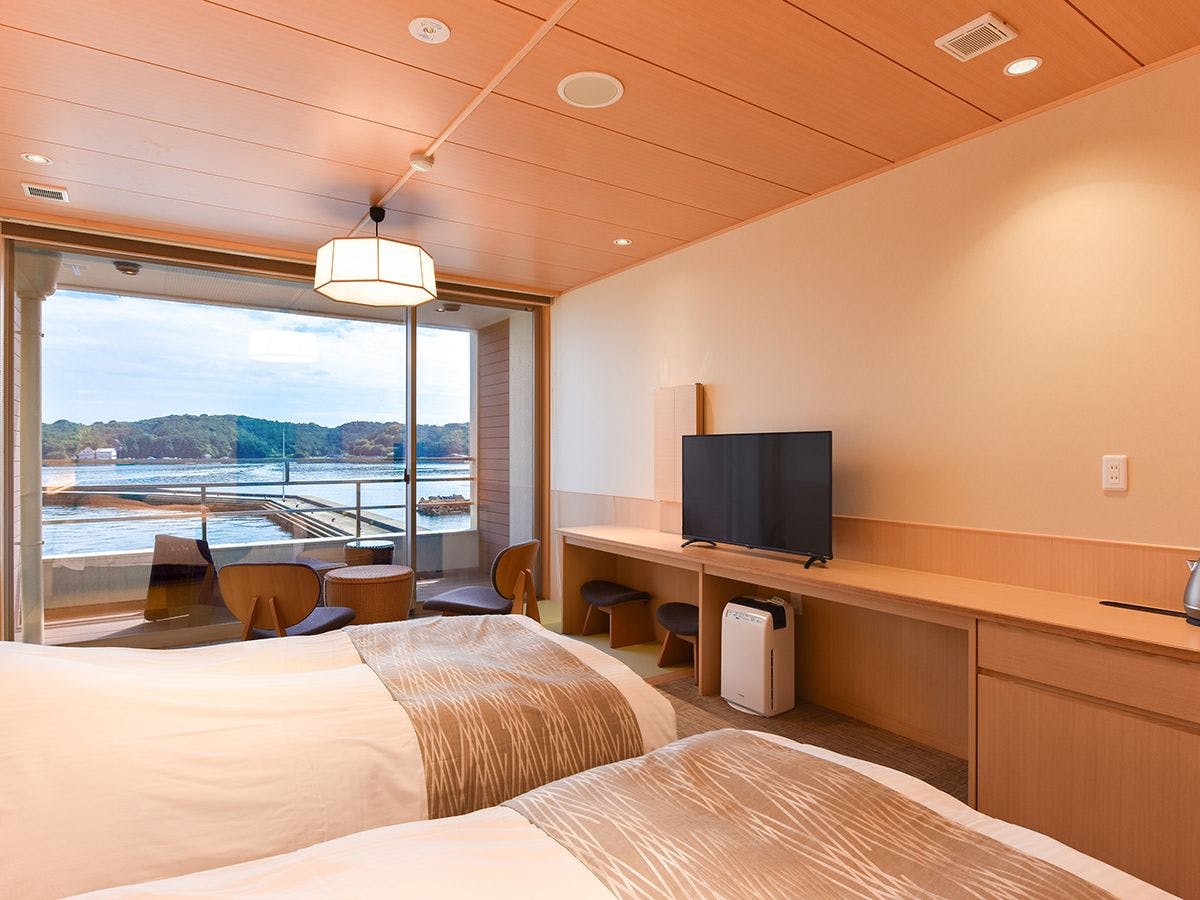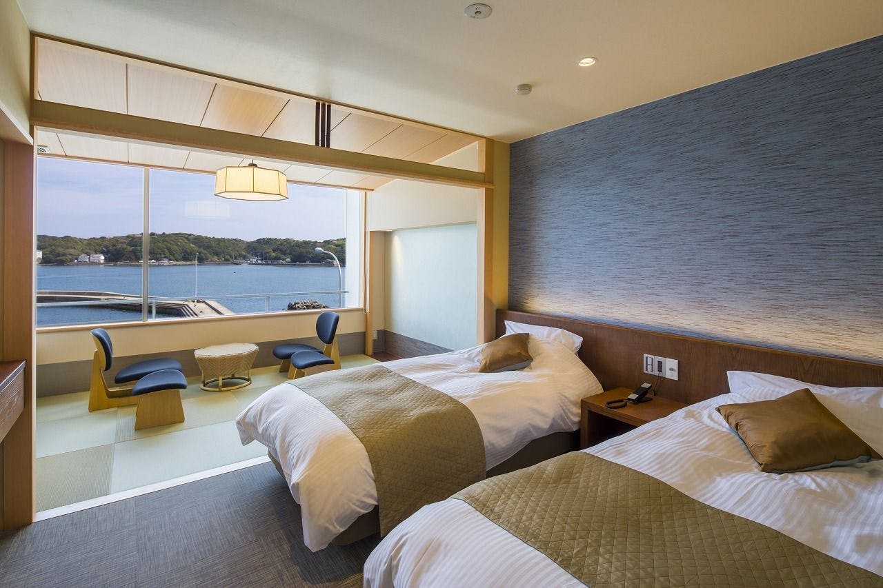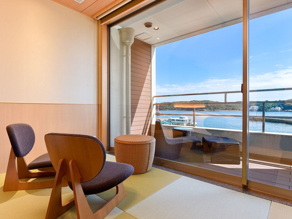 ※和洋室とは眺望が異なり、海を斜めに見る眺望となります。(お部屋正面の眺望が船着き場です)
