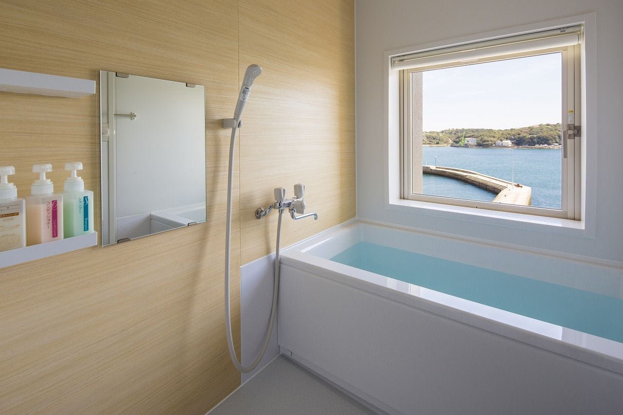 展望風呂からも海が眺められます。特別な記念日にもおすすめです。