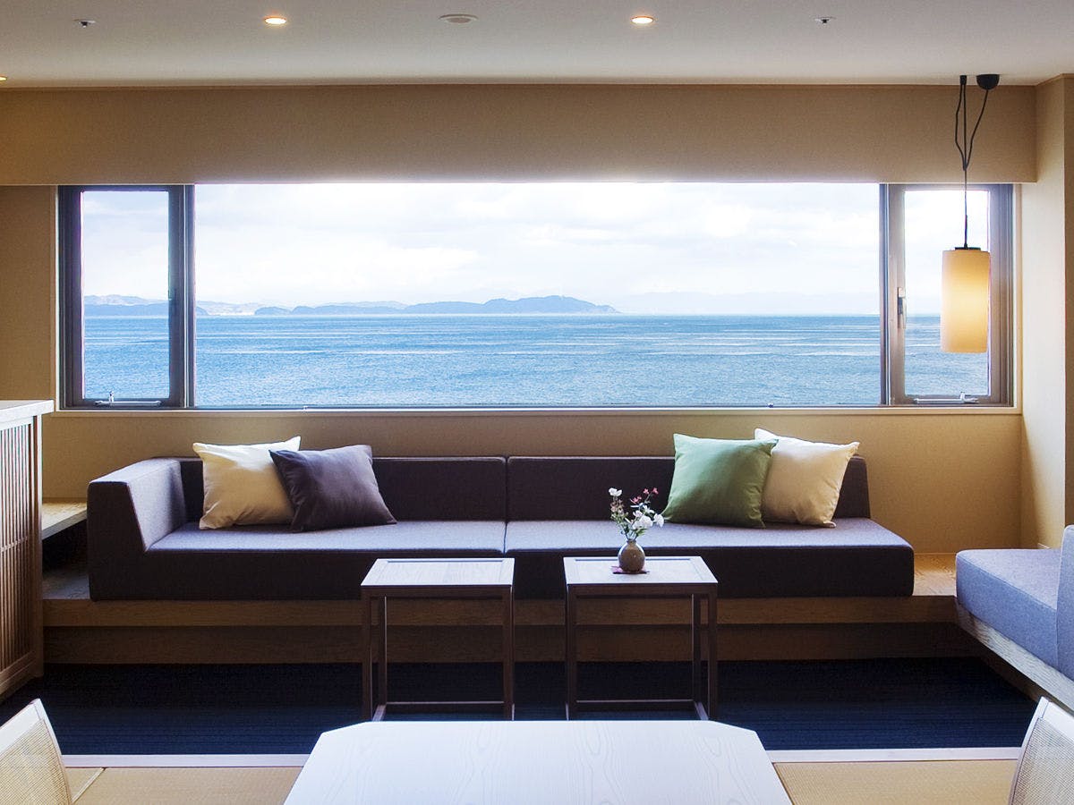 全客室オーシャンビュー、淡路の海を望む温泉旅館。窓の外に広がる180度のパノラマは正に絶景。階毎に異なるコンセプトの客室や、豊富なプラン誇ります。自分の楽しみ方を選べる、どんな世代にもお勧めの一軒。