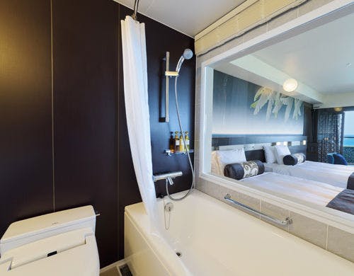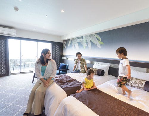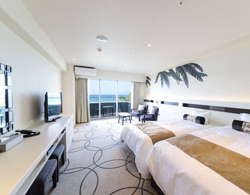 オーシャンビューのお部屋からは美しいエメラルドグリーンの海を一望できます。